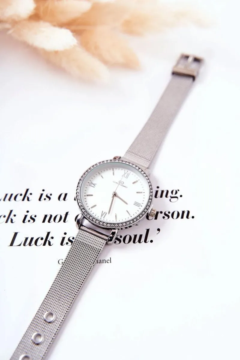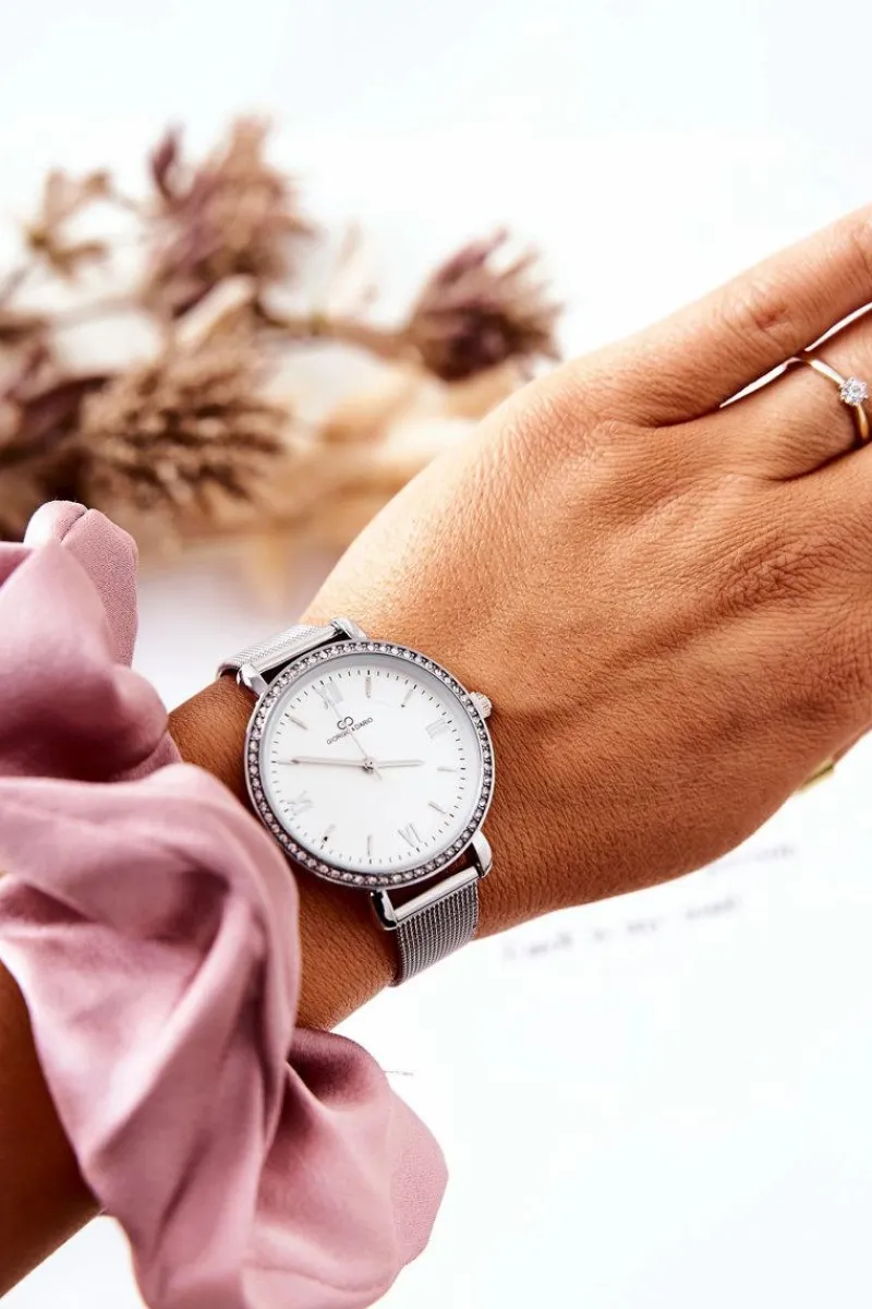 Outlet Giorgio&Dario Zegarek Z Cyrkoniami Na Bransolecie Mesh Srebrny
