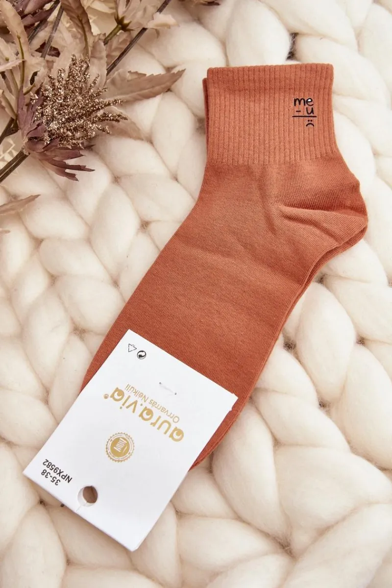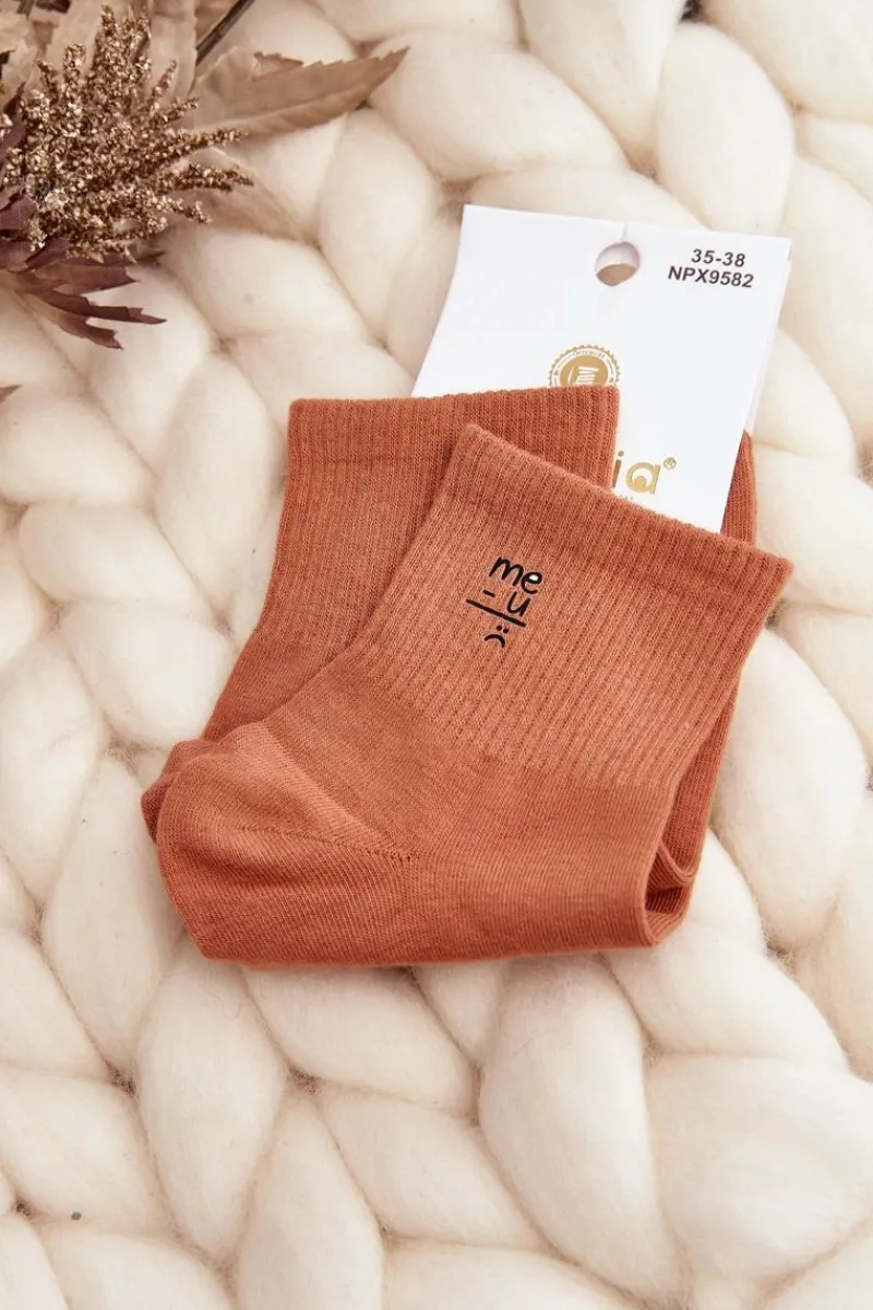 Klasyczne, damskie skarpetki zostały wykonane w 85% z bawełny. Model za kostkę z małym rebusem. Ściągacz świetnie dopasuje się do tęgości nogi. Idealne do wielu rodzajów obuwia.