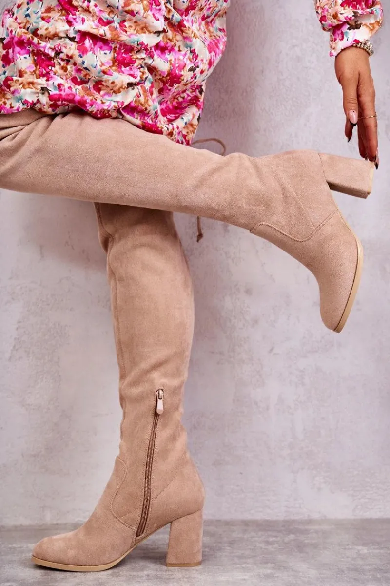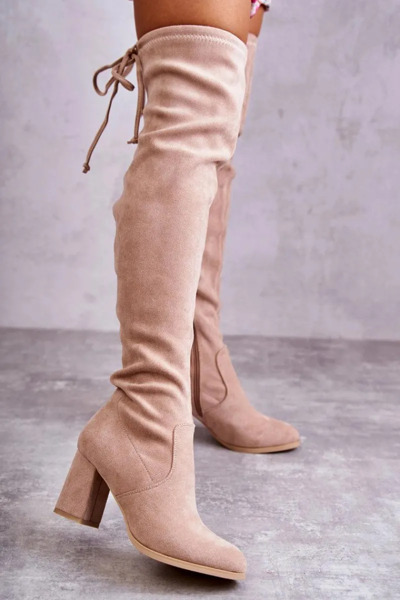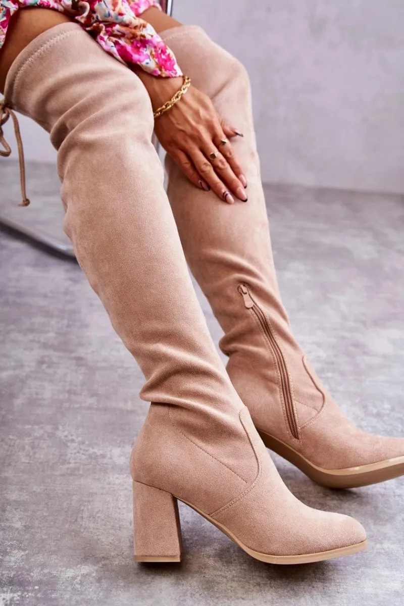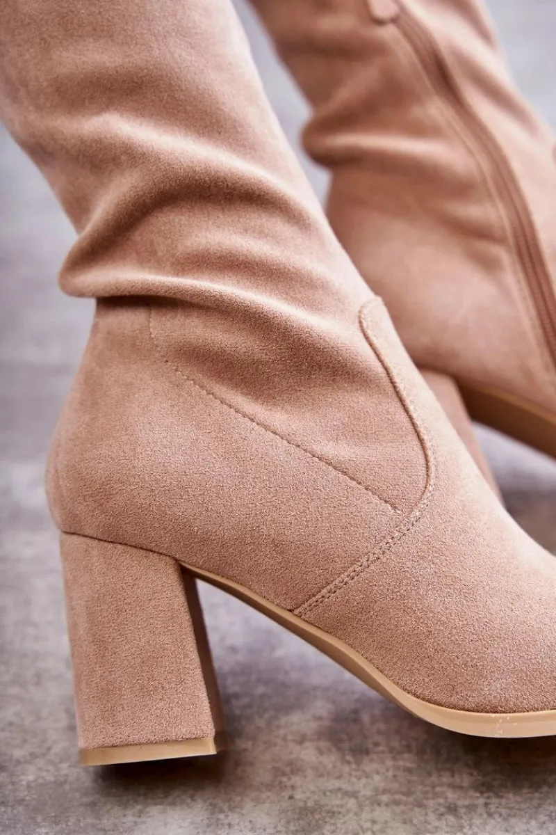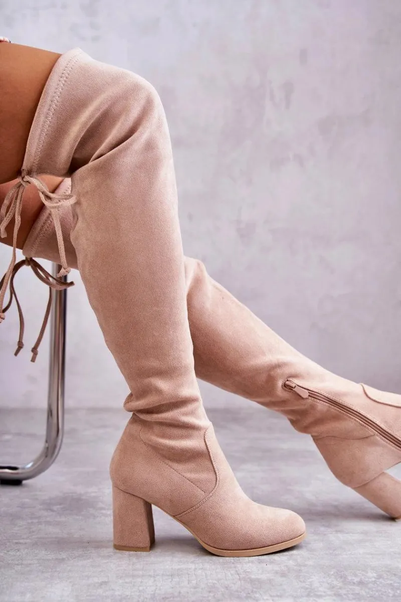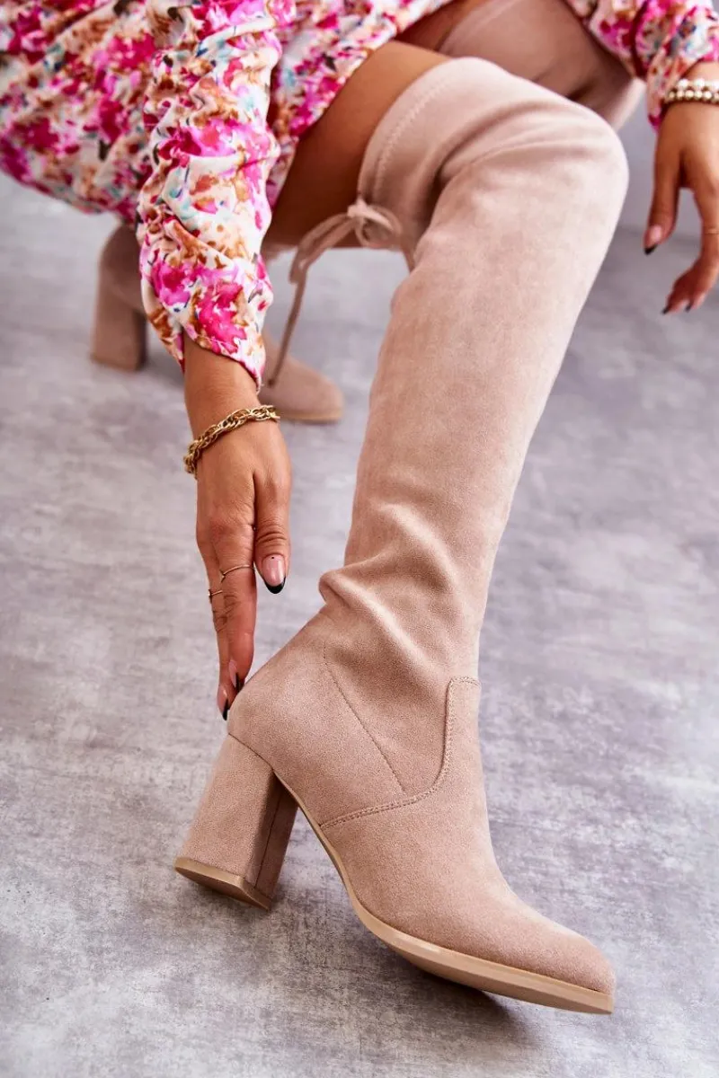Klasyczne kozaki zostały wykonane z eko zamszu. Posiadają wiązanie na górze cholewki pozwalające na odpowiednią regulację. Kozaki osadzono na obcasie w postaci słupka. Model wsuwany z dodatkowym zamkiem. W środku ocieplone na wysokości stopy. Świetny model do sukienek mini czy spódniczek. Koniecznie powinnaś je mieć! Przy wyborze rozmiaru prosimy sugerować się tabelą rozmiarów.