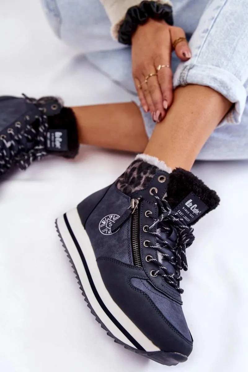 Klasyczne botki damskie marki Lee Cooper zostały wykonane z wysokiej jakości ekologicznej skóry. Model posiada wewnątrz miłe w dotyku ocieplenie w postaci futerka. Wkładka wykonana z materiału. Dodatkowo zapiętek jest usztywniany. Botki posiadają solidne sznurowanie umożliwiające odpowiednie dopasowanie do tęgości nogi. Buty zostały osadzone na masywnej platformie. Przy wyborze rozmiaru prosimy sugerować się tabelą rozmiarów.