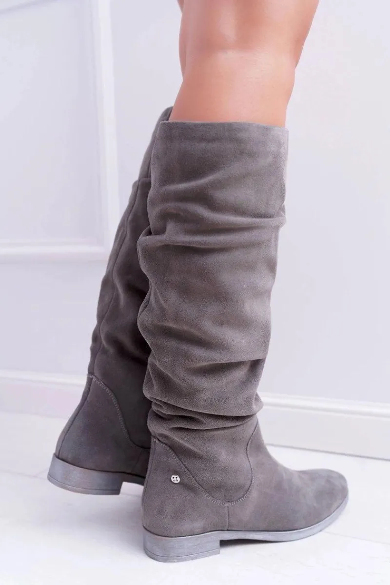 Outlet Maciejka Kozaki Damskie Skóra Zamsz Szare Pello