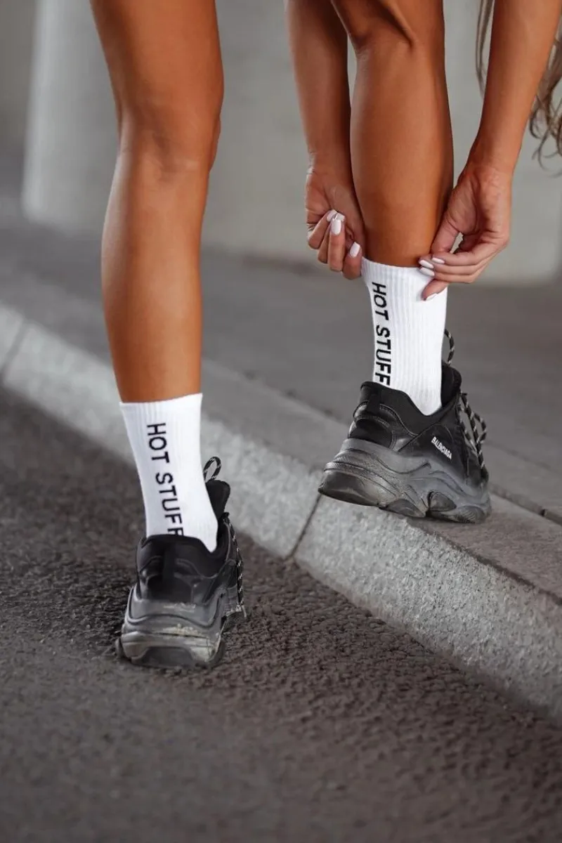 Outlet Milena Bawełniane Skarpetki Damskie HOT STUFF Białe