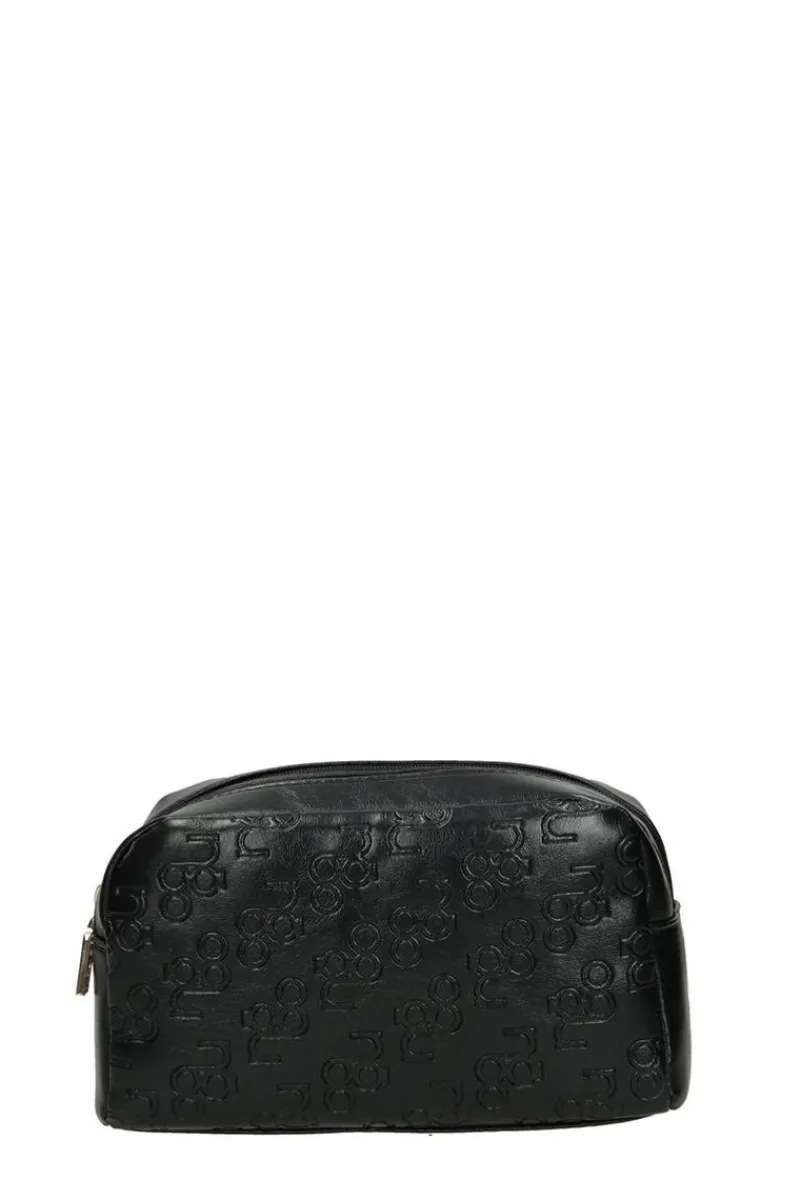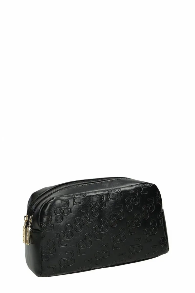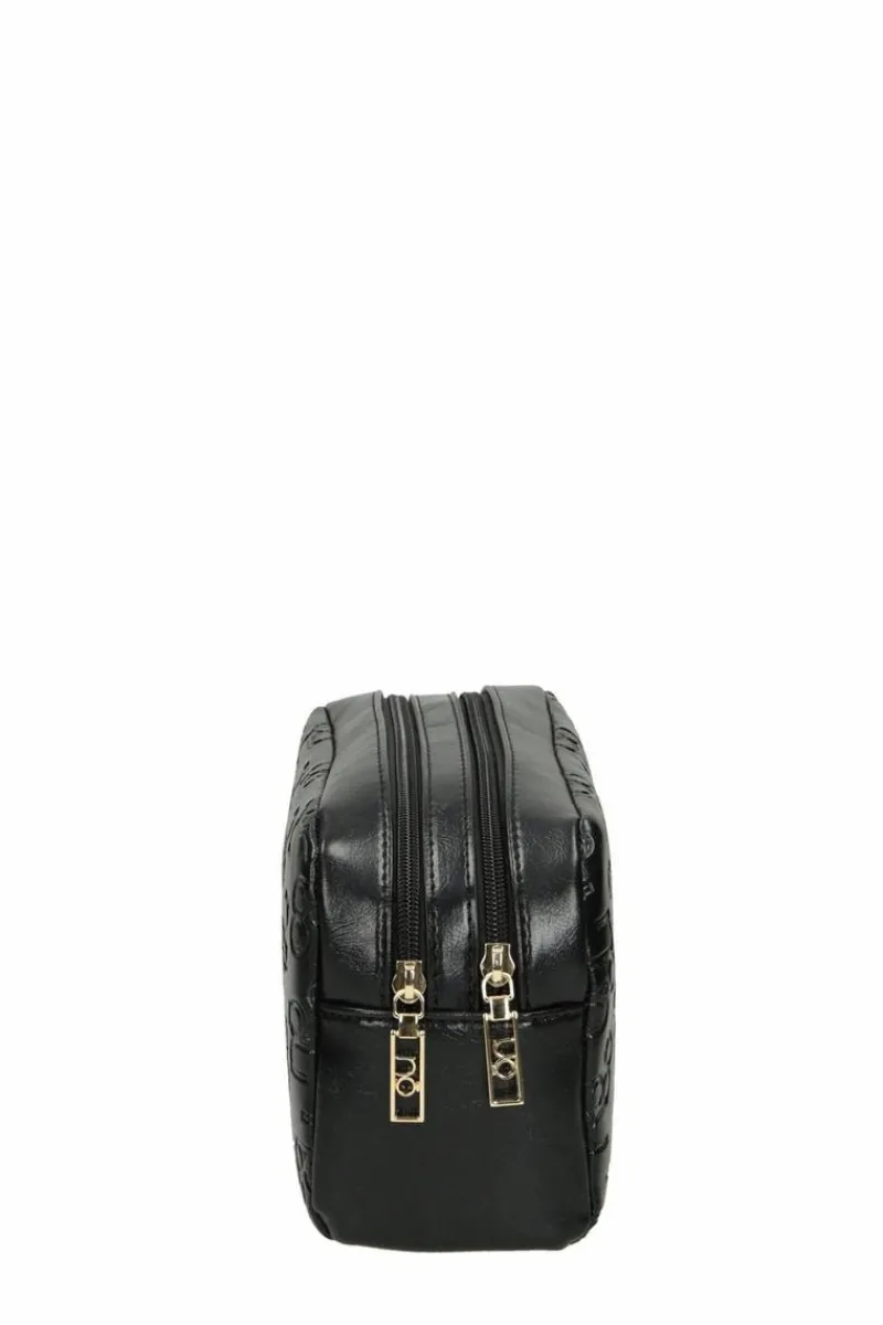 Damska kosmetyczka marki Nobo świetnie sprawdzi się w podróży czy w domu. Pozwoli na uporządkowanie swoich kosmetyków i produktów do pielęgnacji. Została wykonana z eko skóry w tłoczony wzór z logo. Komory są zamykane na suwaki. W środku znajdują się dwie kieszonki- jedna otwarta, druga zamykana na zamek. Podszewka wykonana w 100% z poliestru.