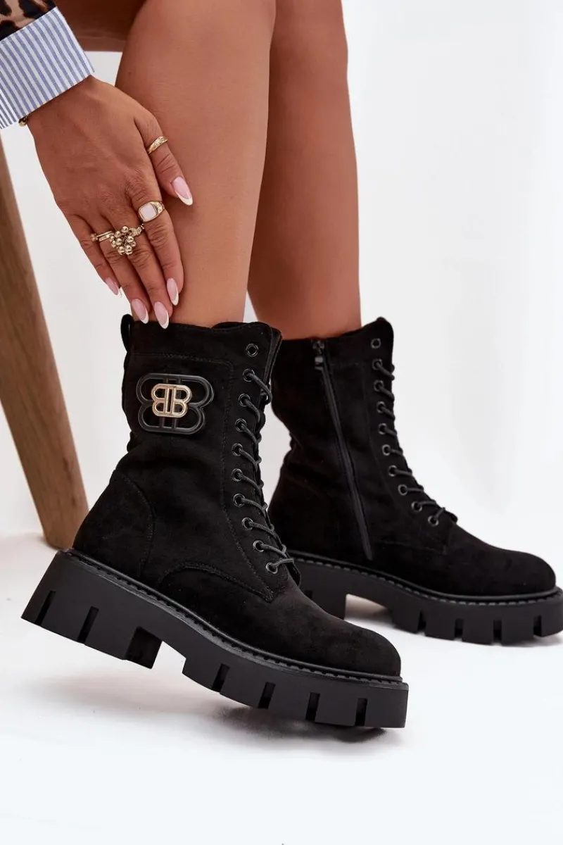 Botki workery damskie to połączenie miejskiego stylu i wygody. Model ocieplony miękkim kocem obuwniczym zapewnia ciepło w chłodniejsze dni, a połączenie sznurowania z zamkiem umożliwia idealne dopasowanie do stopy i łatwe zakładanie. Masywny obcas i platforma gwarantują stabilny krok, a subtelny ozdobny detal po boku cholewki dodaje charakteru i modowego akcentu, dzięki czemu botki świetnie sprawdzą się w codziennych stylizacjach. Przy wyborze rozmiaru prosimy sugerować się tabelą rozmiarów.