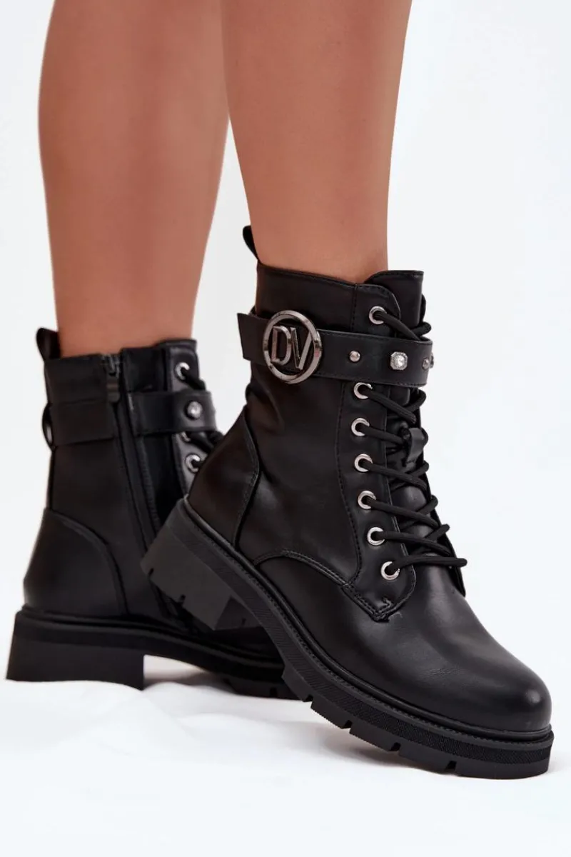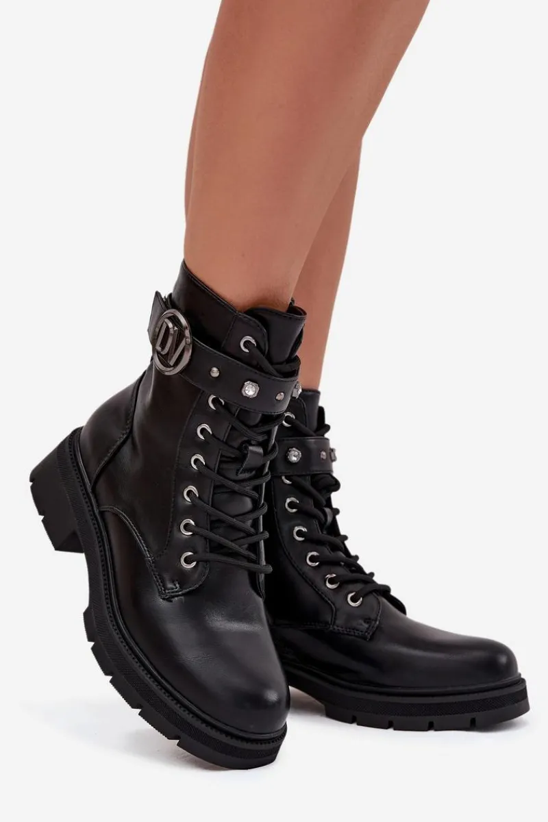 Botki workery damskie z eko skóry to połączenie wygody i modnego, miejskiego charakteru. Model sznurowany i zapinany na zamek zapewnia idealne dopasowanie oraz łatwe zakładanie. Ocieplenie miękkim kocem obuwniczym gwarantuje ciepło w chłodniejsze dni, a pasek z ozdobami dodaje subtelnego, efektownego akcentu, który wyróżnia buty w codziennych stylizacjach. Przy wyborze rozmiaru prosimy sugerować się tabelą rozmiarów.
