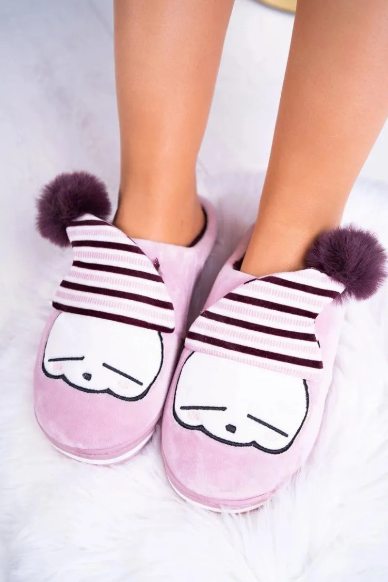 Outlet Papcie damskie Domowe Różowe Wrzosowe Mashimaro Damskie Kapcie Klasyczne