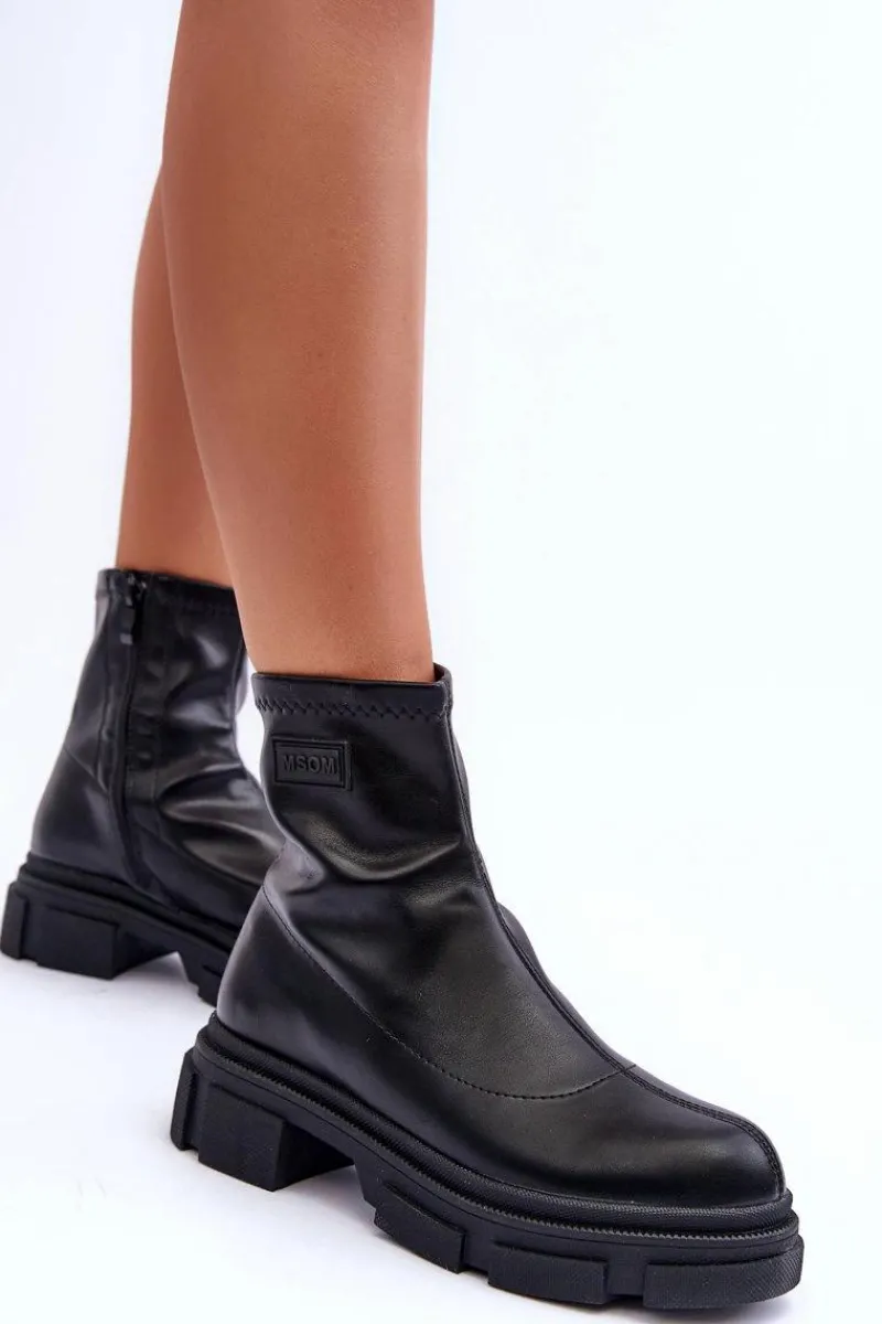 Klasyczne, damskie botki zostały wykonane z eko skóry. Osadzone na masywnej platformie i płaskim obcasie. Zapinane na suwak po wewnętrznej stronie buta. Na cholewce znajdują się przeszycia. Zapiętek w tym obuwiu jest usztywniony. Świetny model do wielu stylizacji! Koniecznie powinny znaleźć się w Twojej szafie! Przy wyborze rozmiaru prosimy sugerować się tabelą rozmiarów.