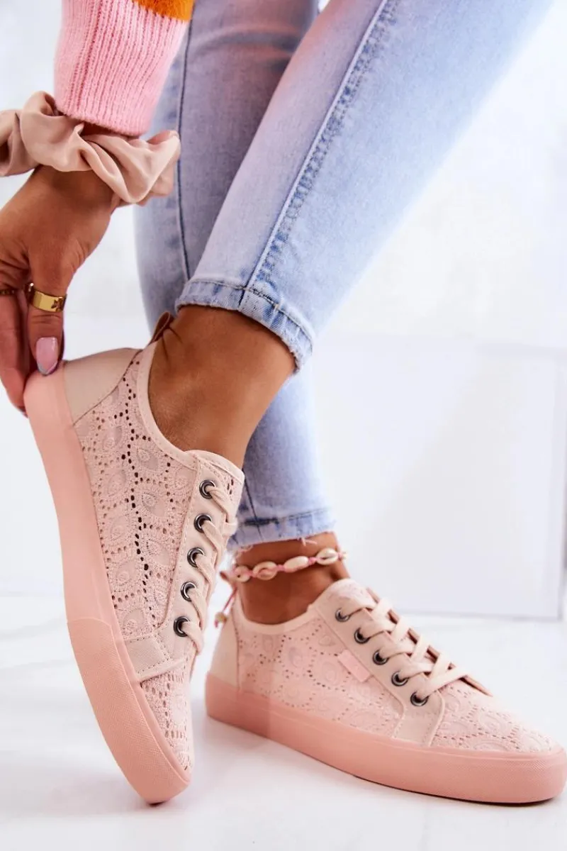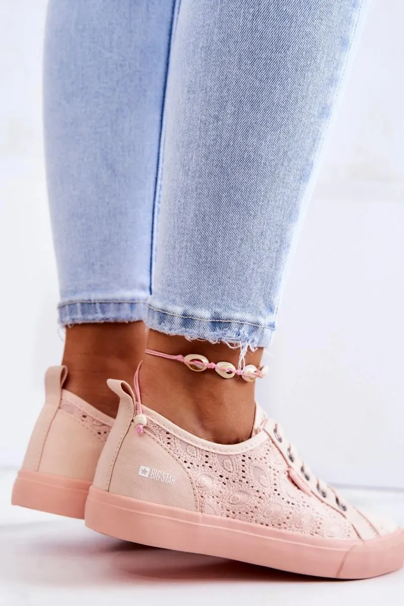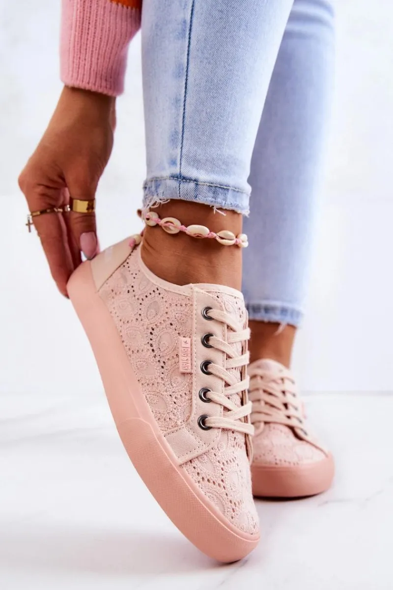 Outlet Trampki Ażurowe BIG STAR JJ274059 Jasnoróżowe Damskie Trampki Damskie Big Star|Trampki Damskie Niskie