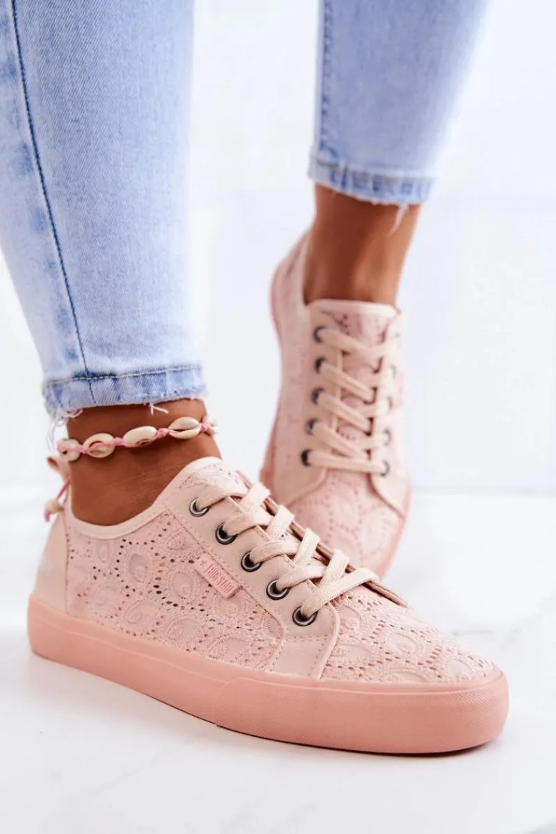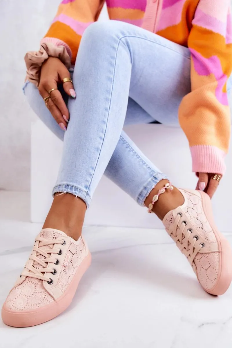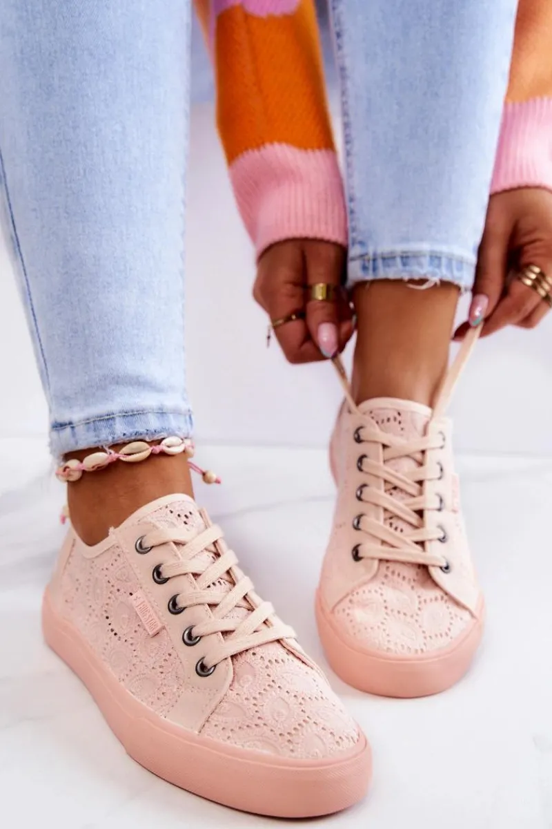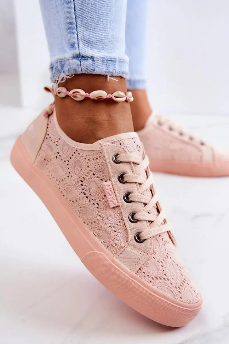Outlet Trampki Ażurowe BIG STAR JJ274059 Jasnoróżowe Damskie Trampki Damskie Big Star|Trampki Damskie Niskie