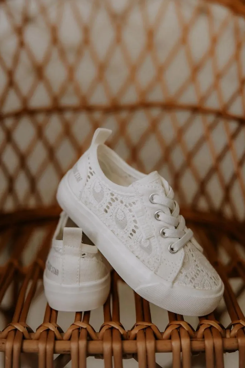 Cudowne trampki dziecięce marki BIG STAR. Trampki wykonane są z materiału tekstylnego w ażurowy wzór. Posiadają antypoślizgową podeszwę. Miękka wkładka zapewni komfort podczas noszenia. Trampki są wsuwane, posiadają gumki imitujące sznurówki. Z boku widnieje logo marki Big Star. Koniecznie sprawdź całą naszą kolekcję butów marki BIG STAR! Rozmiary 17-21 posiadają po 3 oczka do sznurówek, rozmiary 22-27 posiadają po 4 oczka, a rozmiary 28-35 posiadają po 5 oczek. Przy wyborze rozmiaru prosimy sugerować się tabelą rozmiarów.