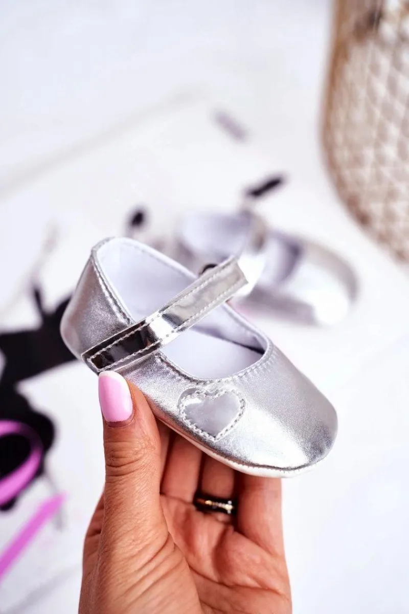 Niesamowite buciki, które wyglądają wprost olśniewająco. Zostały wykonane z miękkiego materiału, który delikatnie połyskuje. Dla wygody ubierania swojego maluszka buciki posiadają zapinanie na rzep. Świetna propozycja jako uzupełnienie garderoby podczas chrztu czy innej okoliczności. Buciki zapakowane są w piękny woreczek. Przy wyborze rozmiaru prosimy sugerować się tabelą rozmiarów.