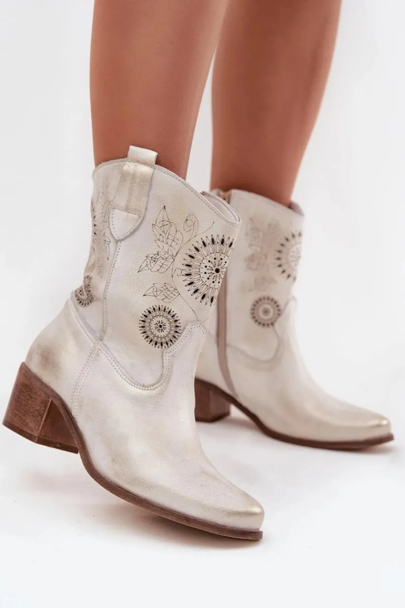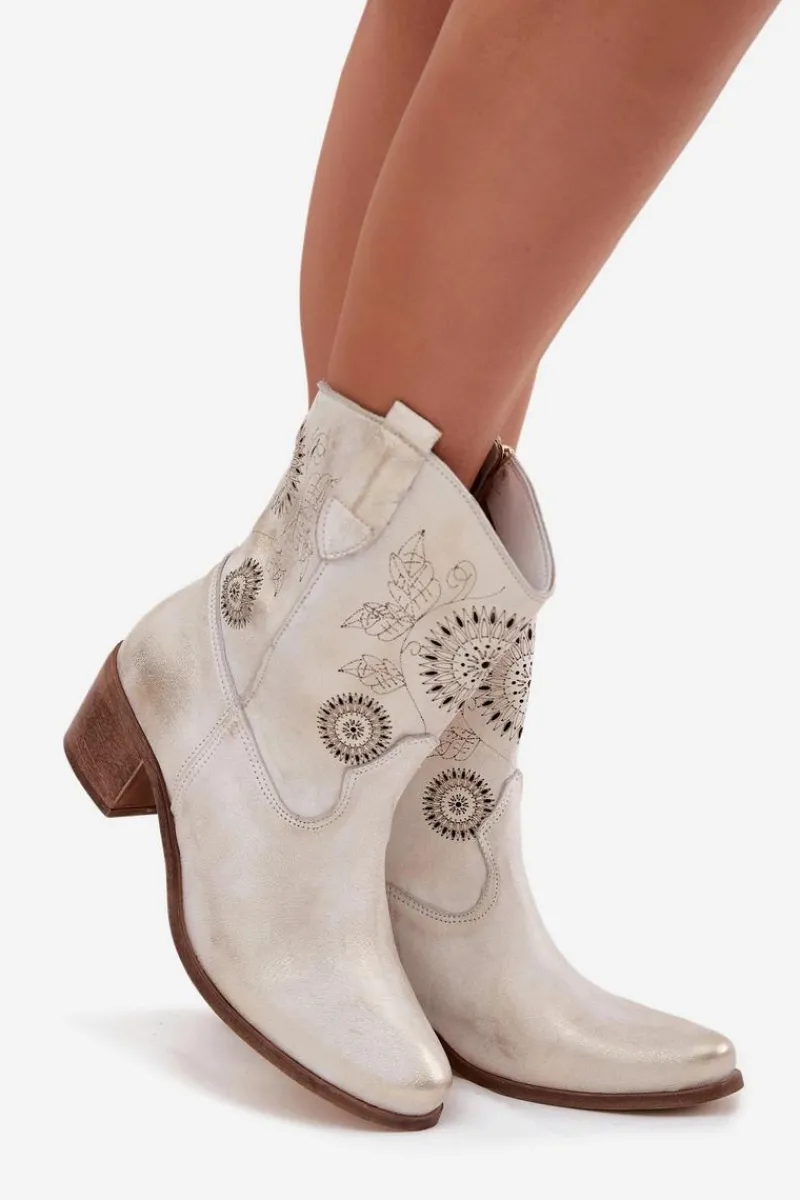Botki damskie wykonane z naturalnego zamszu to elegancka i stylowa propozycja na sezon przejściowy oraz cieplejsze dni jesieni. Subtelny ażurowy wzór dodaje całości lekkości i wyjątkowego charakteru. Model został osadzony na stabilnym obcasie w formie klocka, który zapewnia komfort podczas chodzenia i delikatnie podkreśla sylwetkę. Migdałowe noski. Zapięcie na zamek ułatwia zakładanie i zdejmowanie, czyniąc obuwie wygodnym w codziennym użytkowaniu. To botki, które znakomicie uzupełnią zarówno casualowe, jak i bardziej szykowne stylizacje, dodając im subtelnej elegancji i modnego charakteru. Przy wyborze rozmiaru prosimy sugerować się tabelą rozmiarów.