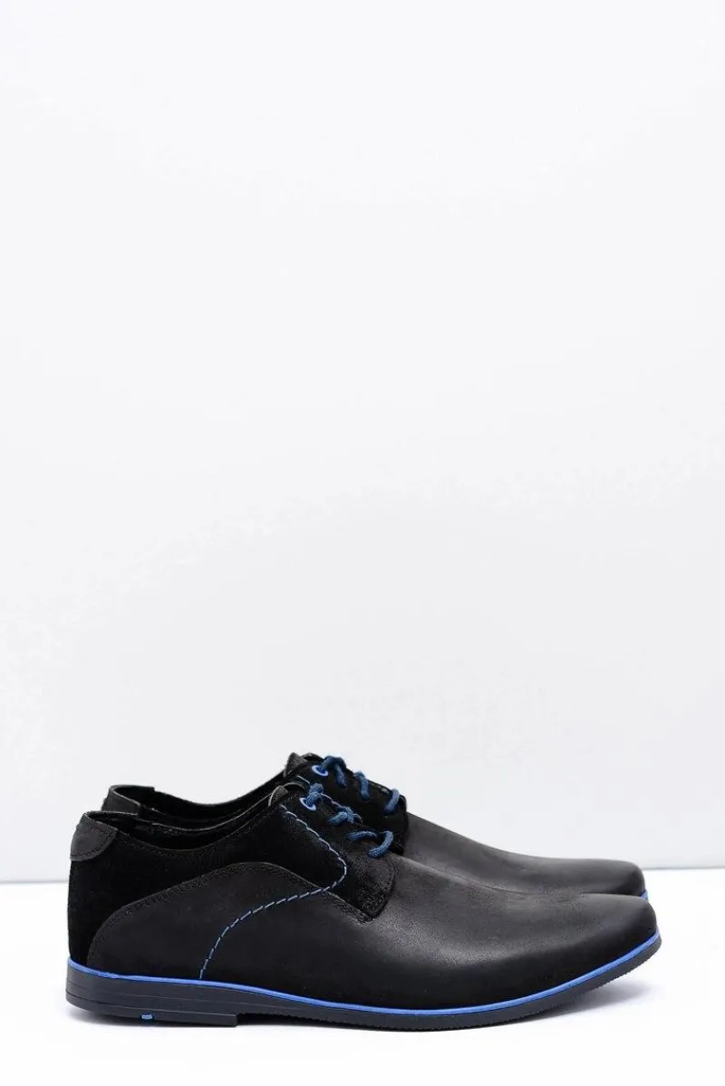 Półbuty Casual>Boto Czarne Skórzane Półbuty Męskie Penegro
