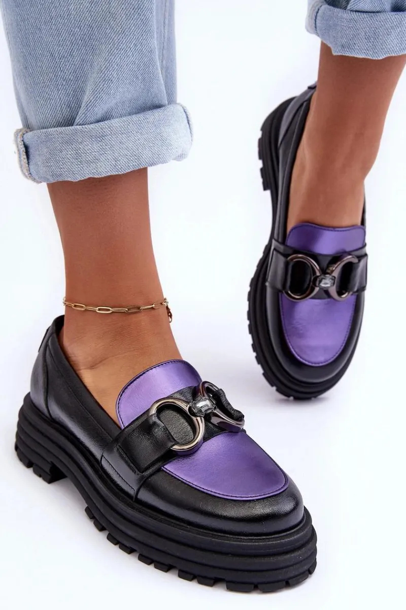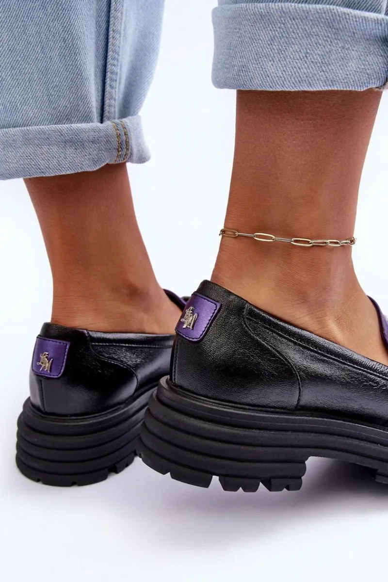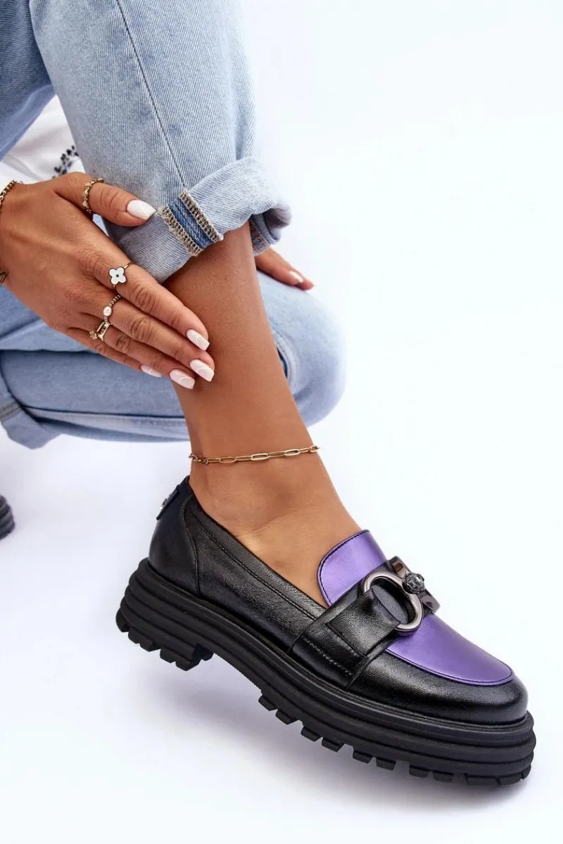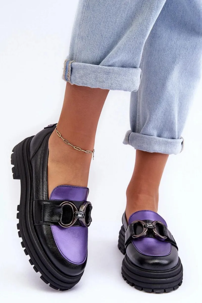 Półbuty damskie zostały wykonane ze skóry naturalnej. Osadzone na masywnej platformie oraz płaskim obcasie. Miękka wkładka ze skóry naturalnej zapewni komfort podczas użytkowania. Model klasyczny, wsuwany. Zapiętek w tym obuwiu jest usztywniony. Z przodu na pasku znajduje się ozdoba z tworzywa sztucznego. Buty te sprawdzą się w wielu stylizacjach! Koniecznie sprawdź całą naszą kolekcję półbutów! Przy wyborze rozmiaru prosimy sugerować się tabelą rozmiarów.