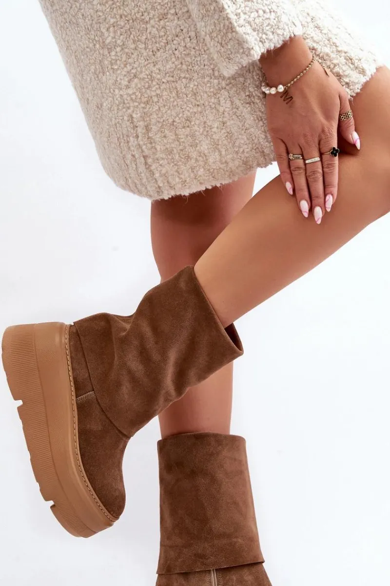 Sale 3410 Zamszowe Damskie Botki Na Masywnej Platformie Camel Damskie Botki Maciejka|Czarne Botki
