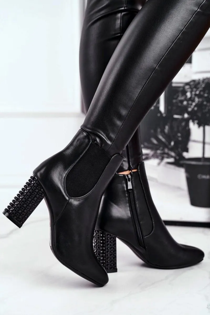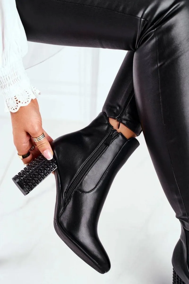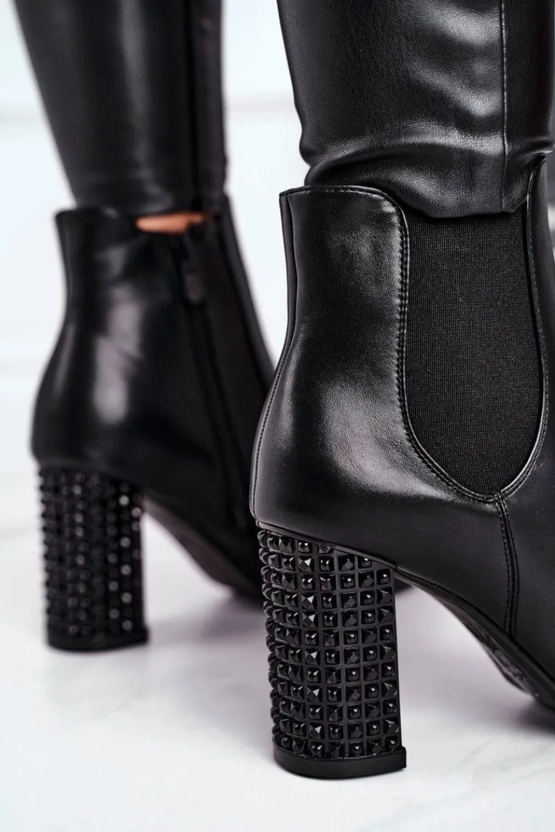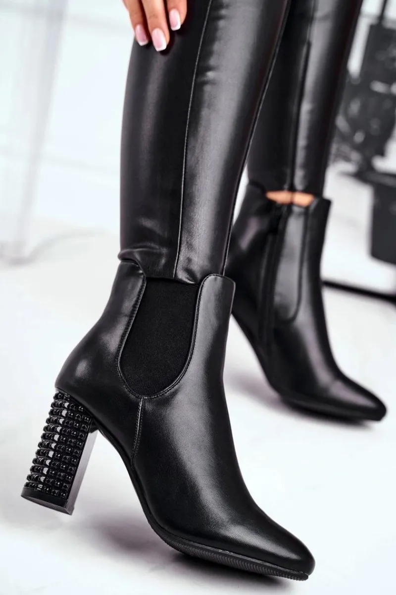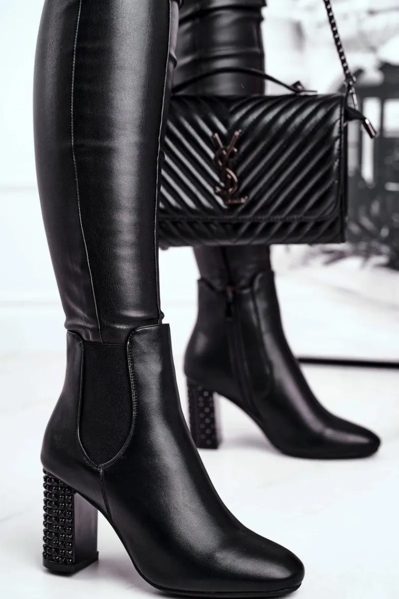 Sale Botki Damskie Na Słupku Czarne In Your Eyes Damskie Botki Na Słupku|Czarne Botki