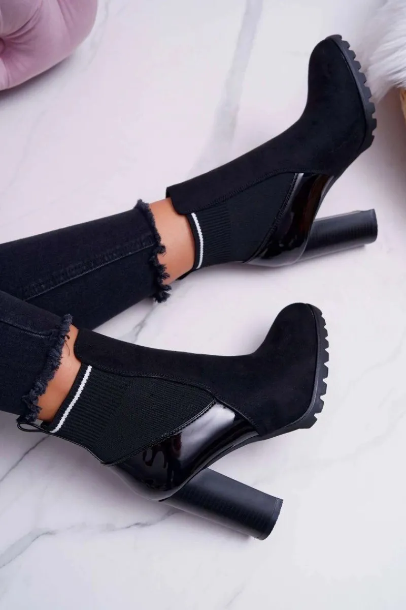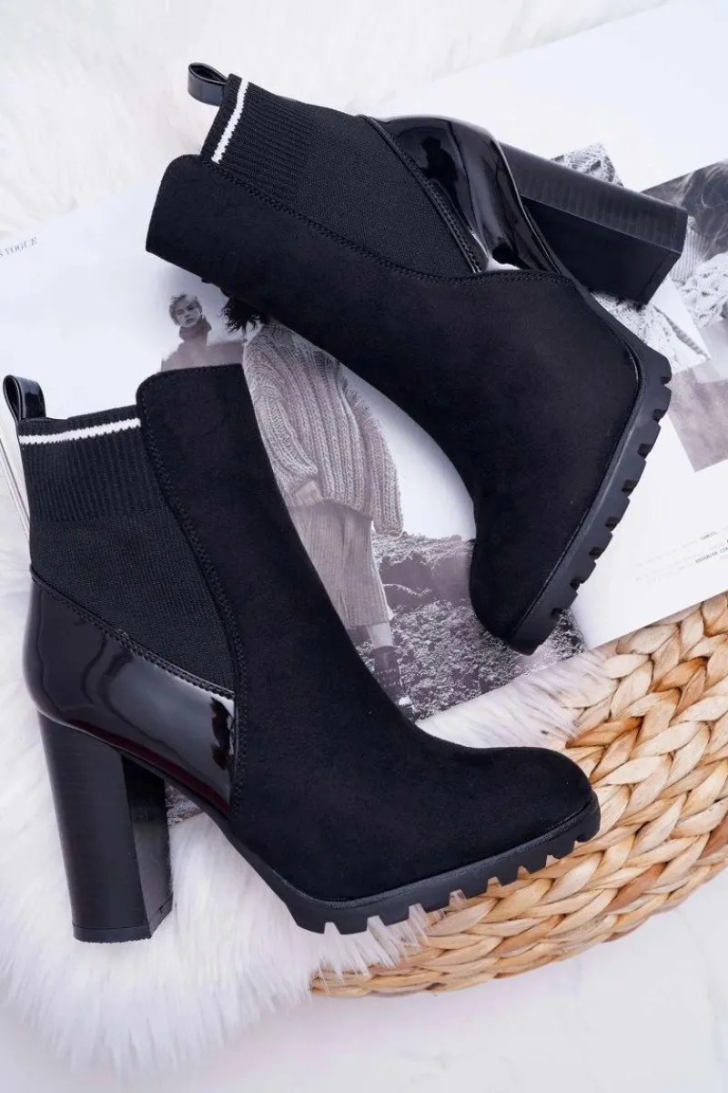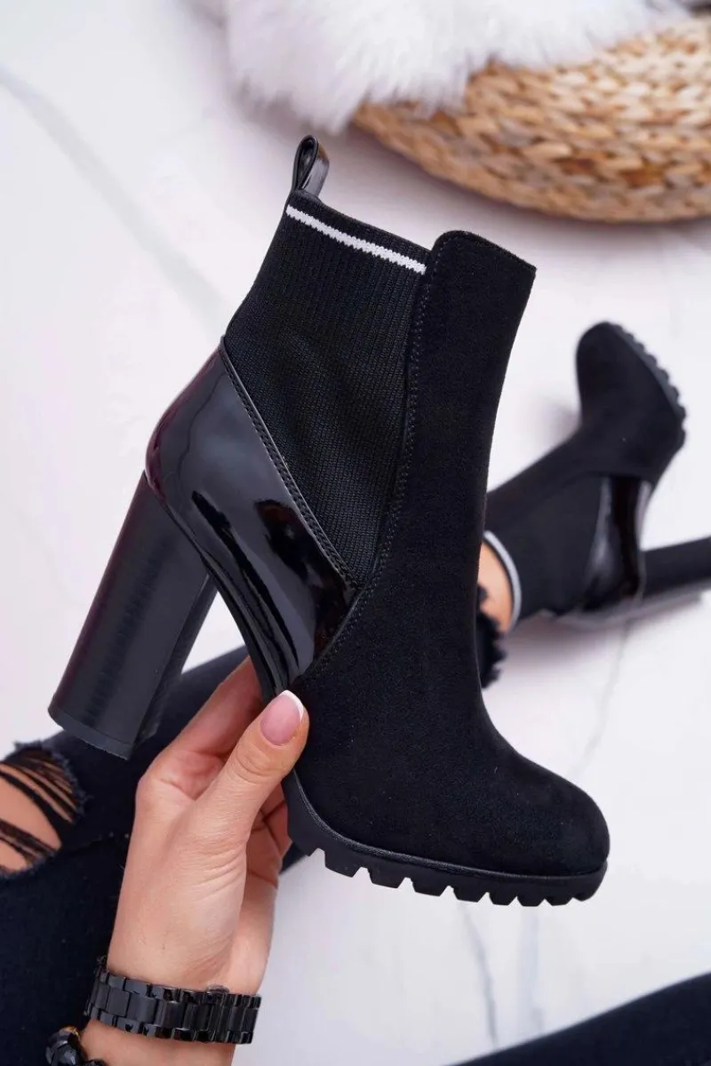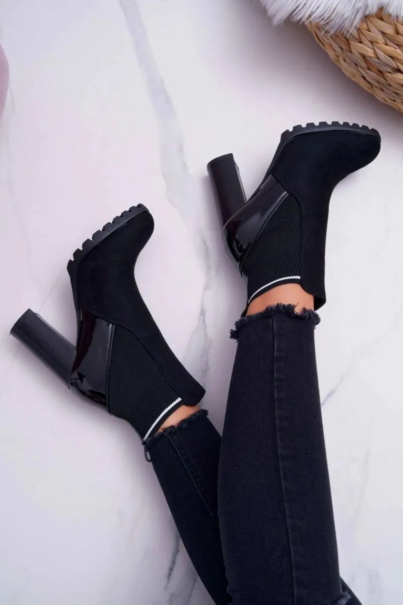 Sale Botki Damskie na Słupku Zamszowe Czarne Fenem Damskie Botki Na Słupku|Botki Zimowe Damskie