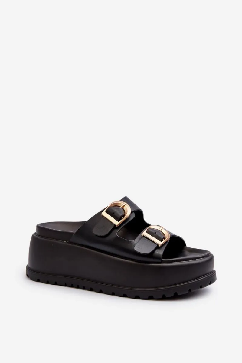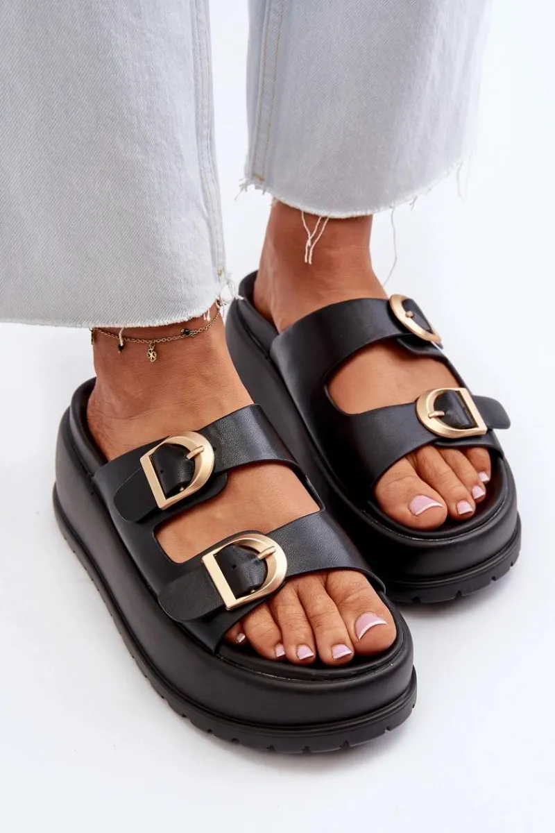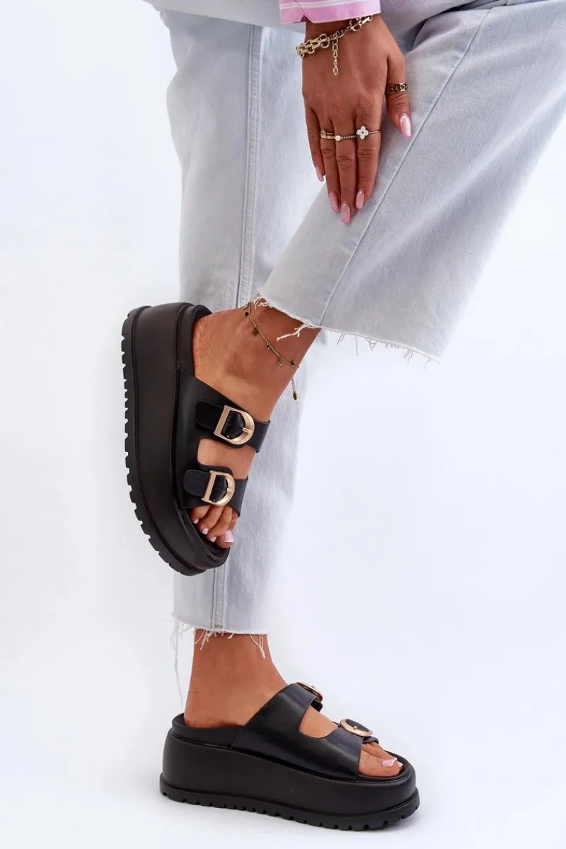 Klapki damskie na masywnej platformie to idealny wybór dla tych, którzy pragną połączyć wygodę z modnym stylem. Wykonane z eko skóry. Regulowane paski z klamrami sprawią, że łatwo dopasujesz je do tęgości stopy. Platforma zapewnia stabilność i wygodę noszenia przez cały dzień. Doskonałe na letnie spacery czy wieczorne wyjścia. Przy wyborze rozmiaru prosimy sugerować się tabelą rozmiarów.