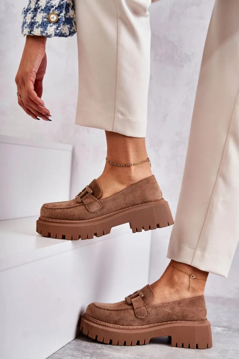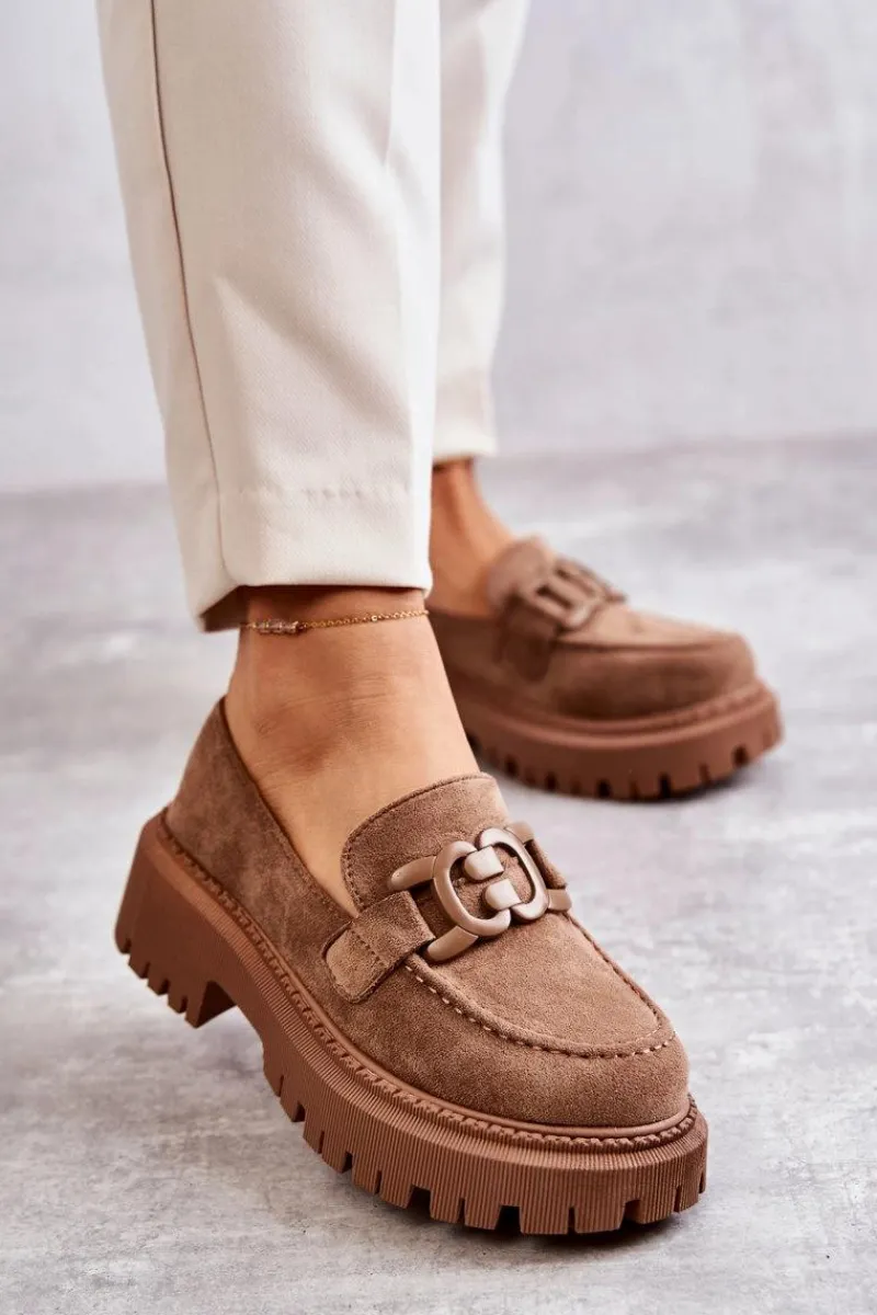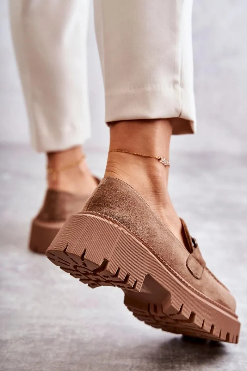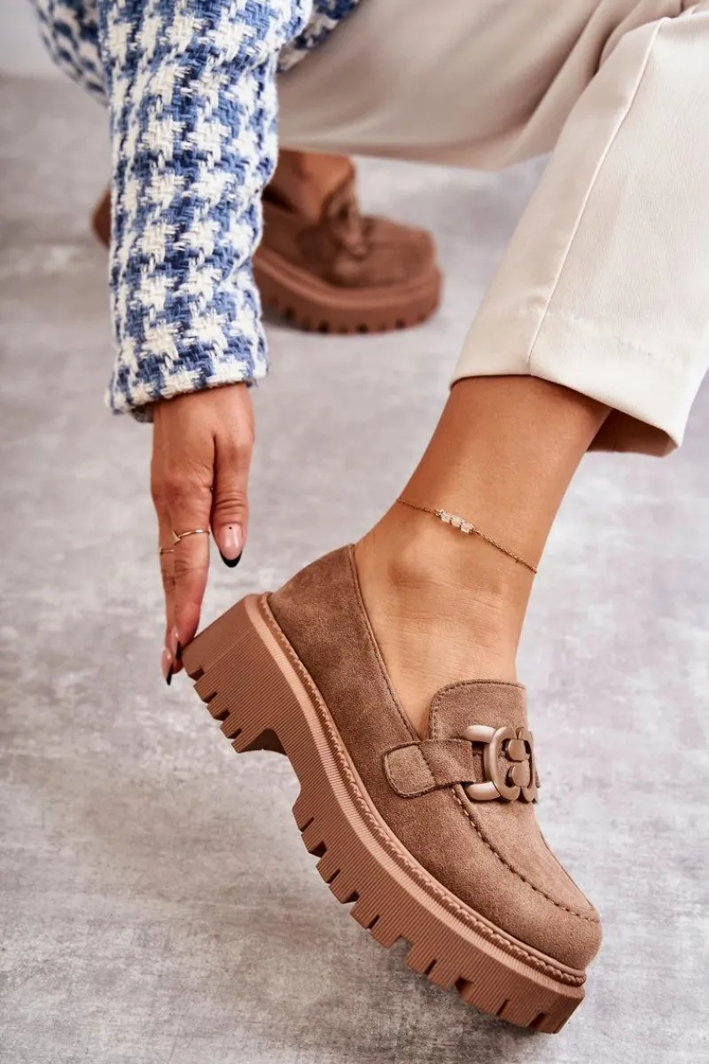 Klasyczne półbuty zostały wykonane z eko zamszu. Na przodzie charakterystyczne zdobienie. Buty te posiadają platformę oraz płaski obcas. Podeszwa ze żłobieniami świetnie odizoluje od nierównego podłoża. Wygodne, a zarazem modne półbuty świetnie sprawdzą się do pracy, na zakupy czy na spotkanie z przyjaciółmi. Miękka wkładka wykonana z eko skóry zapewni komfort podczas użytkowania. Koniecznie musisz je mieć! Przy wyborze rozmiaru prosimy sugerować się tabelą rozmiarów.
