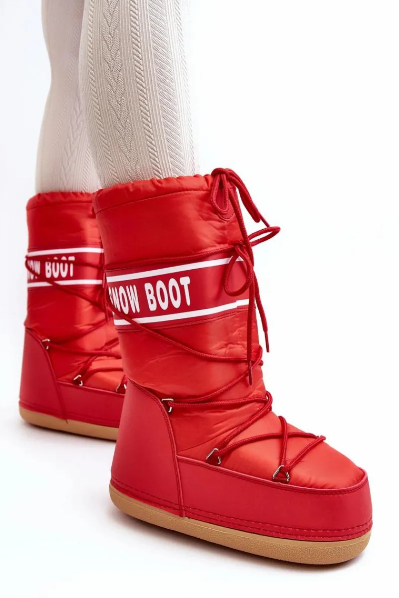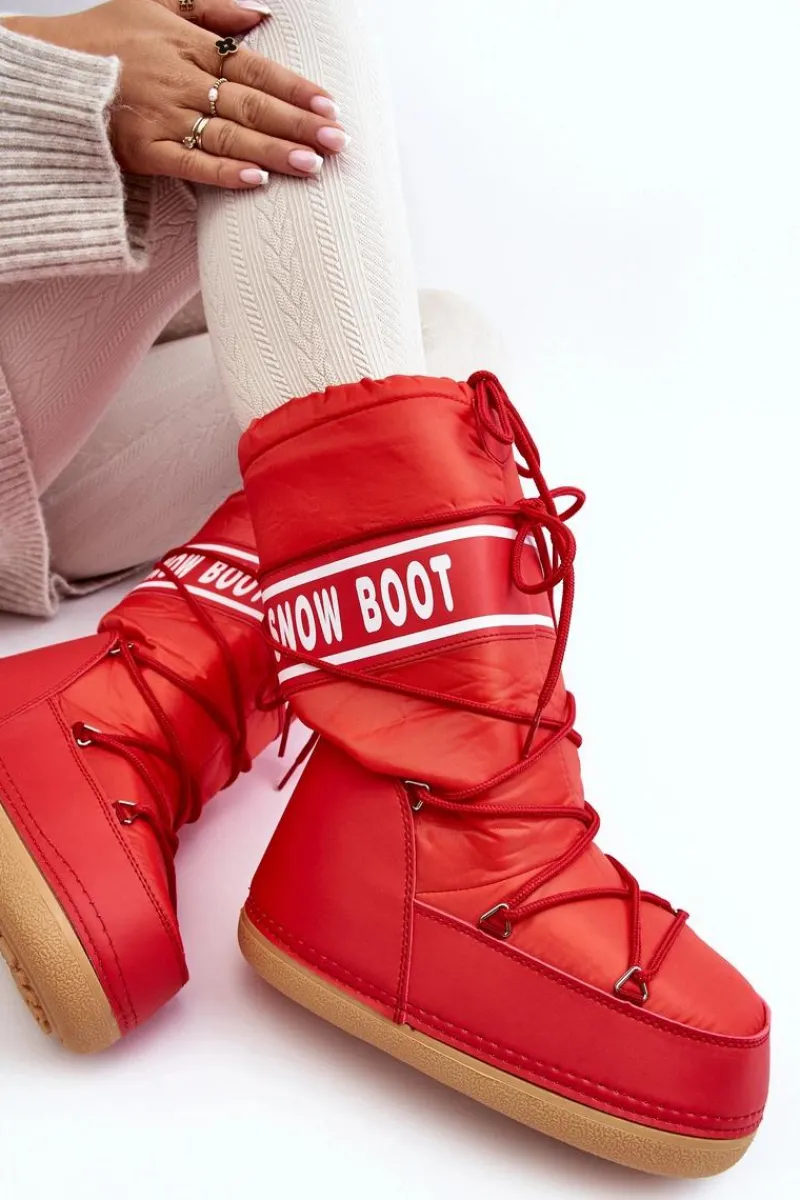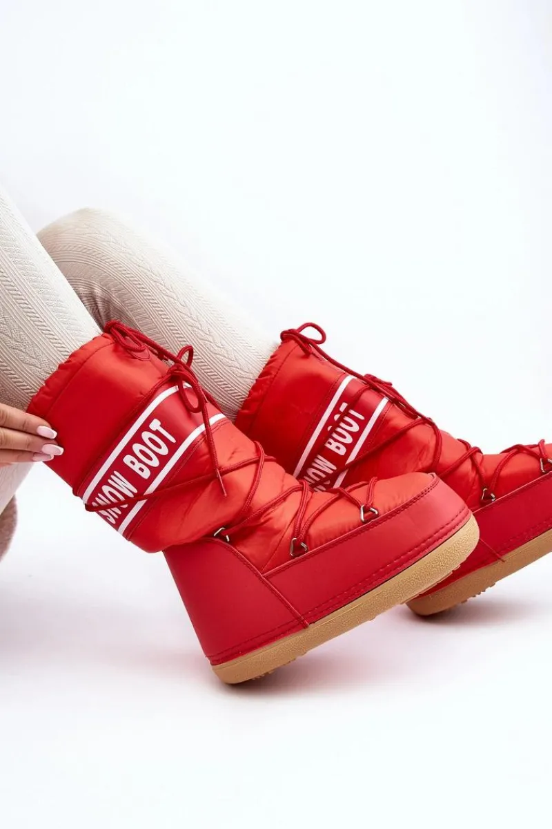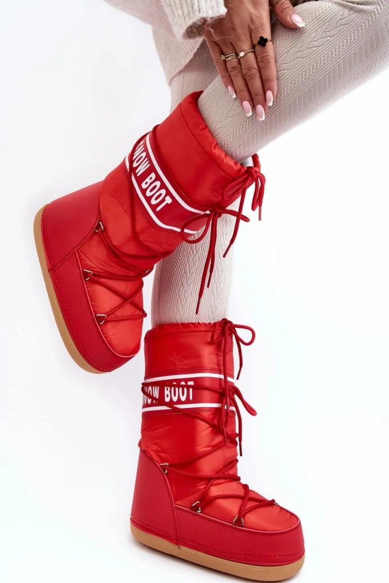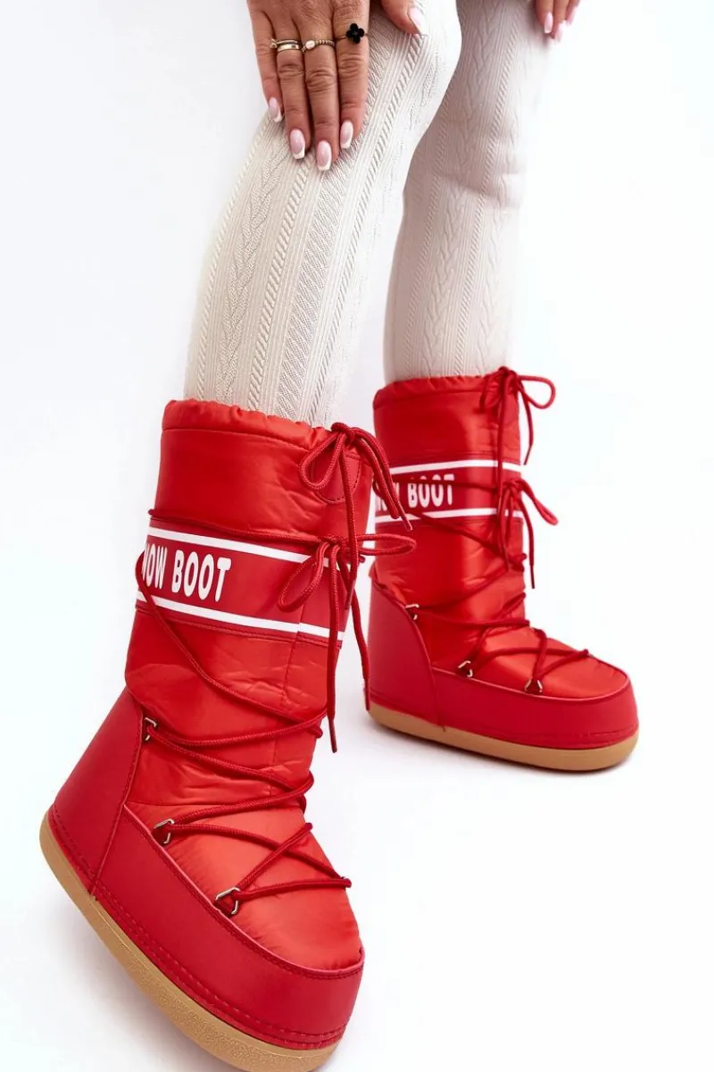 Niezwykle ciepłe i wygodne, damskie śniegowce zostały wykonane z materiałów odpornych na zimno i wiatr. Cholewka z dodatkiem eko skóry i ozdobnym napisem wzbogaci Twoją jesienno-zimową stylizację. Śniegowce są wsuwane i posiadają dodatkowe sznurowanie z przodu i u góry cholewki. Model ten został osadzony na masywnej platformie. Wewnątrz posiadają ocieplenie w postaci pianki i koca obuwniczego. Te śniegowce to idealny model na chłodniejsze dni! Przy wyborze rozmiaru prosimy sugerować się tabelą rozmiarów.