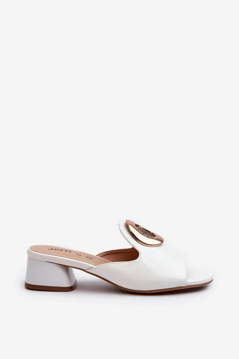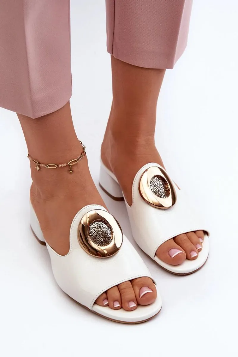 Klapki damskie marki Jezzi. Wykonane z eko skóry. Złota ozdoba dodaje elegancji i subtelności. Doskonale sprawdzą się zarówno na letnie spacery, jak i na wieczorne wyjścia. Dzięki niskiemu obcasowi można w nich czuć się wygodnie przez cały dzień, a jednocześnie prezentują się bardzo kobieco i modnie. Idealne na różne okazje, te klapki dodają blasku Twojej stylizacji. Przy wyborze rozmiaru prosimy sugerować się tabelą rozmiarów.