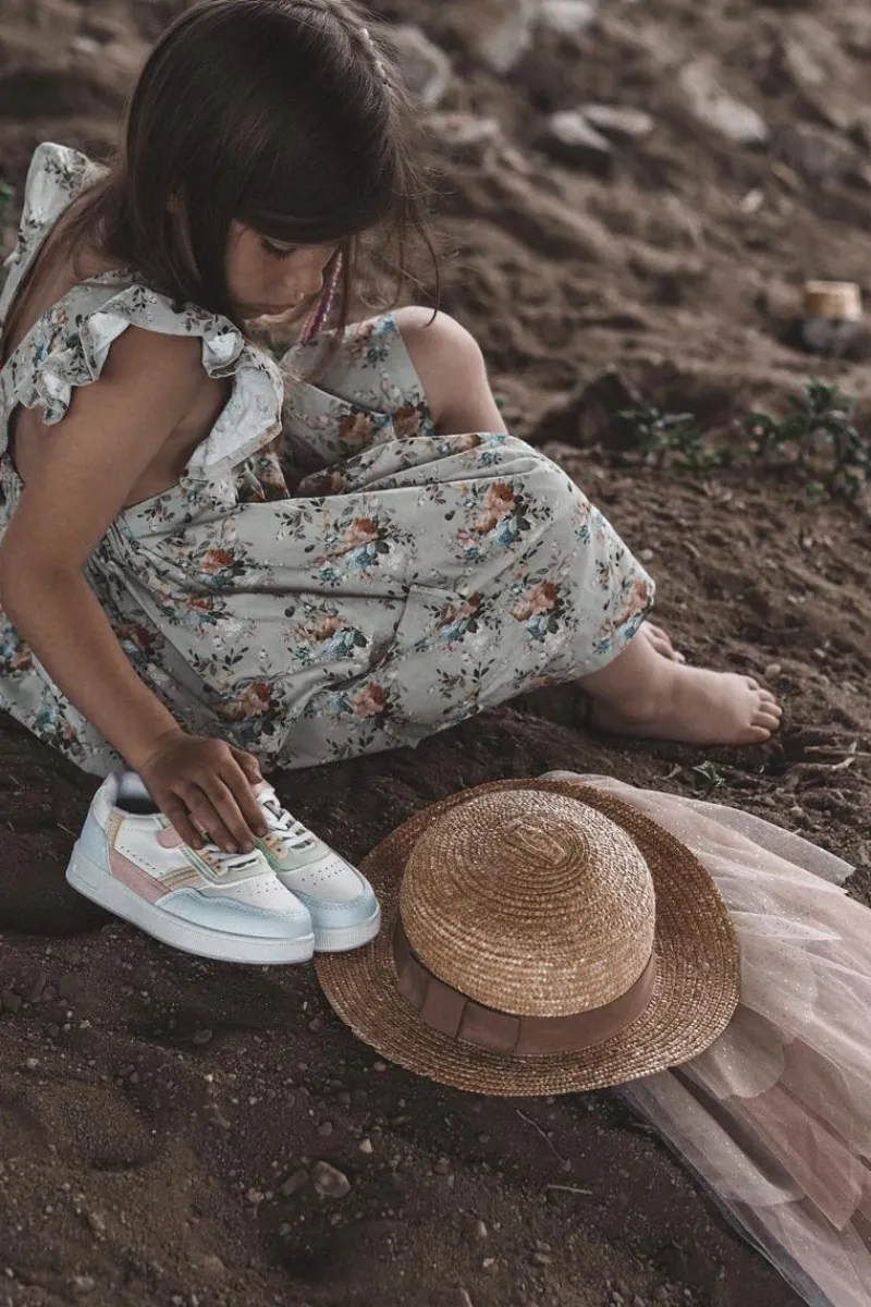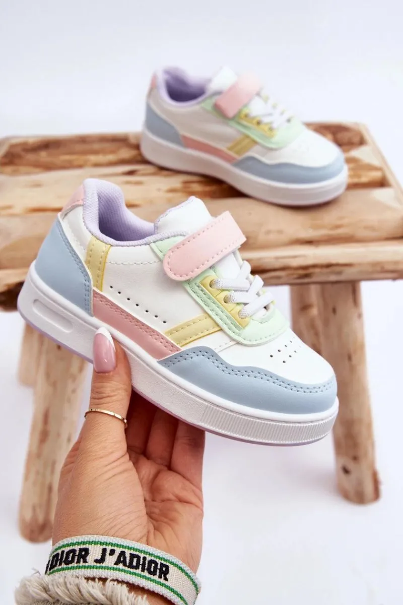 Dziecięce buty sportowe wykonane z eko skóry posiadają na przodzie delikatną perforację. Osadzone na platformie z tworzywa sztucznego. Wkładka została wykonana z materiału. Ten model z pewnością przypadnie do gustu Twojemu dziecku! Sneakersy posiadają zapinanie na rzep. Przy wyborze rozmiaru prosimy sugerować się tabelą rozmiarów.
