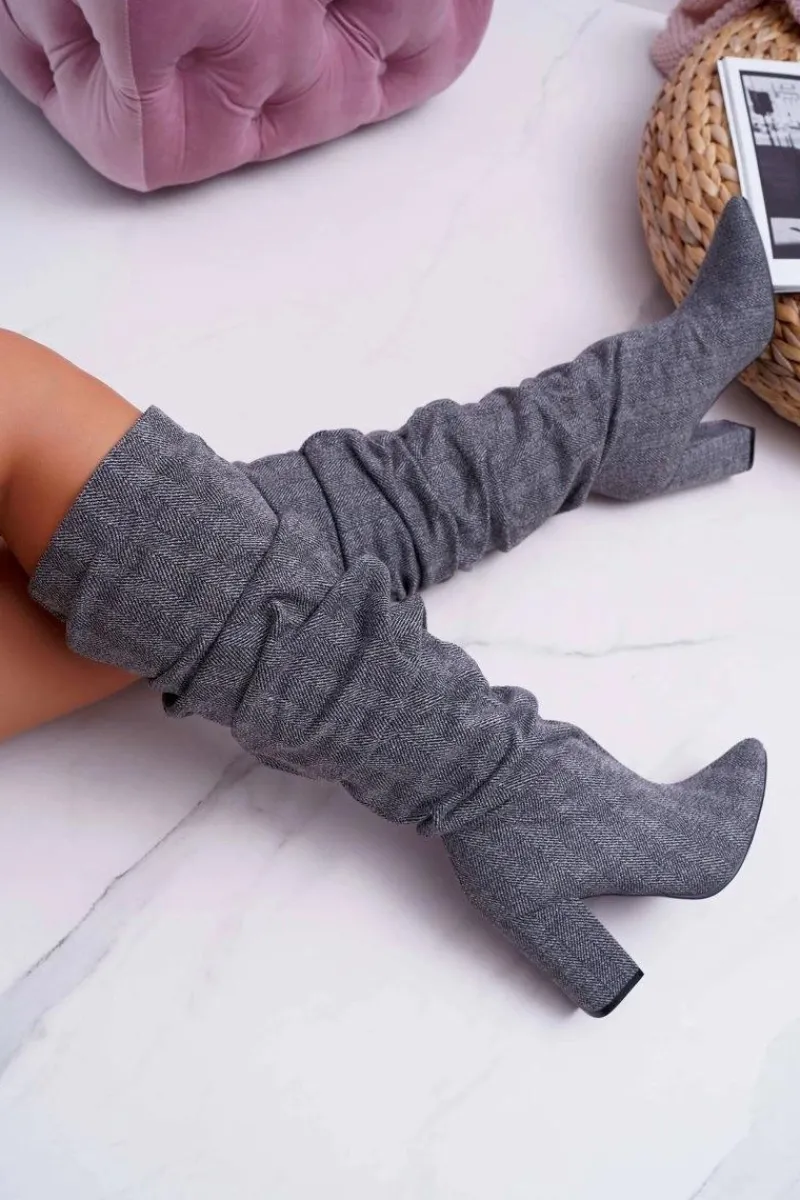 Sale Boto Kozaki Damskie Na Słupku Do Kolan Szare Termen