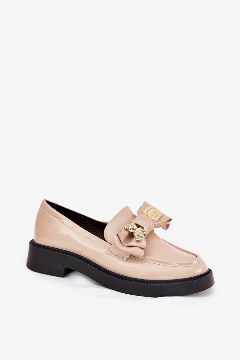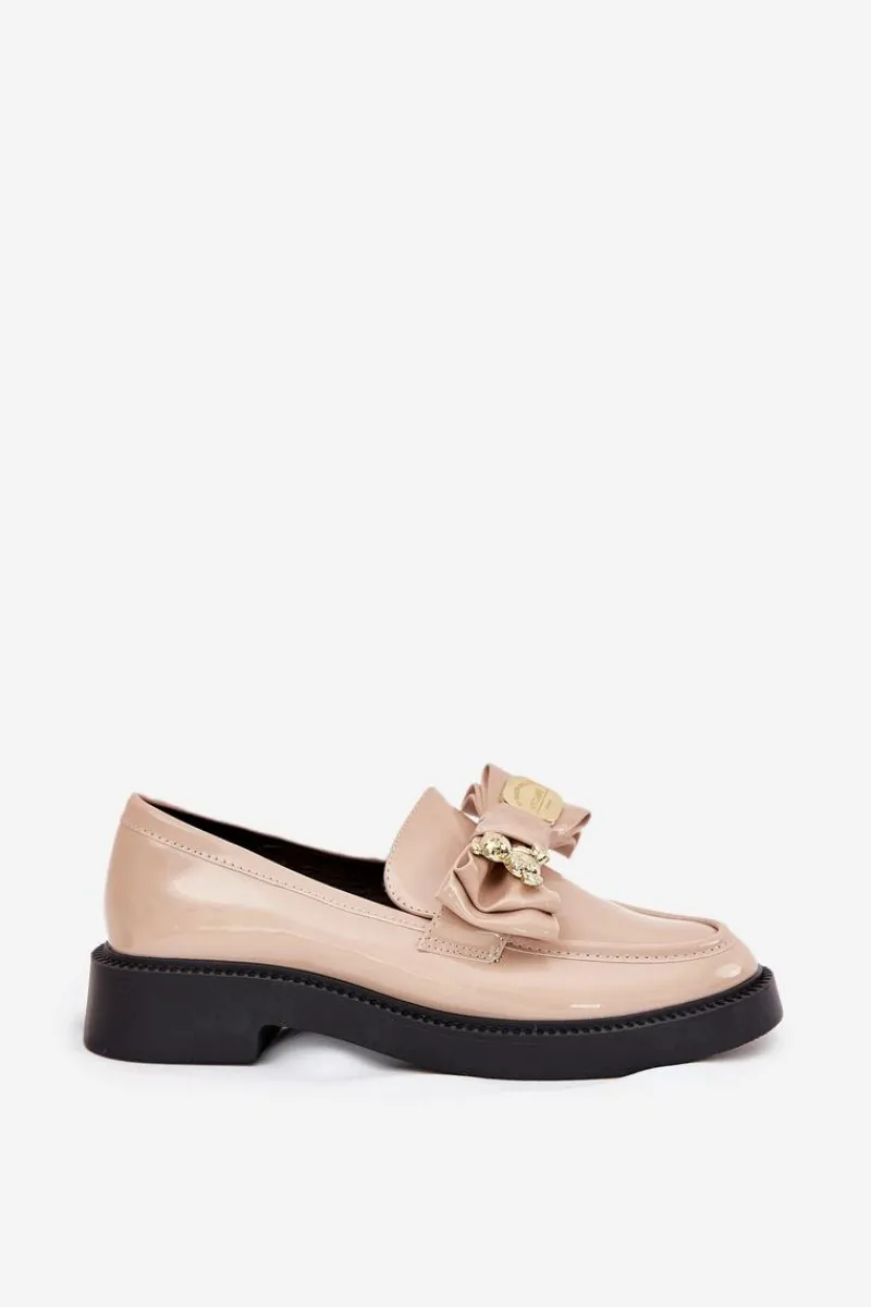 Modne mokasyny z eko skóry, które łączą elegancję z urokiem detali. Model posiada kokardkę z ozdobną broszką, która zdobi buty napisem i misiem, nadając im wyjątkowego charakteru. Zaokrąglone noski zapewniają komfort przez cały dzień, a klasyczny fason sprawia, że te mokasyny będą doskonałym wyborem do wielu stylizacji. Idealne na co dzień, łączą wygodę z modnym wyglądem. Przy wyborze rozmiaru prosimy sugerować się tabelą rozmiarów.