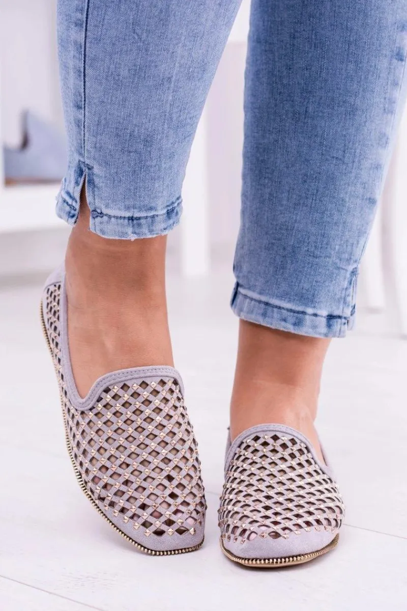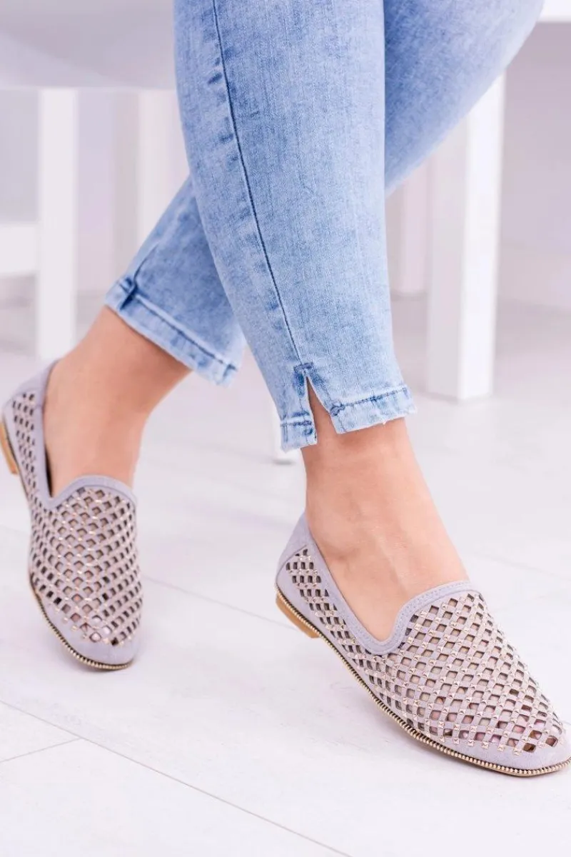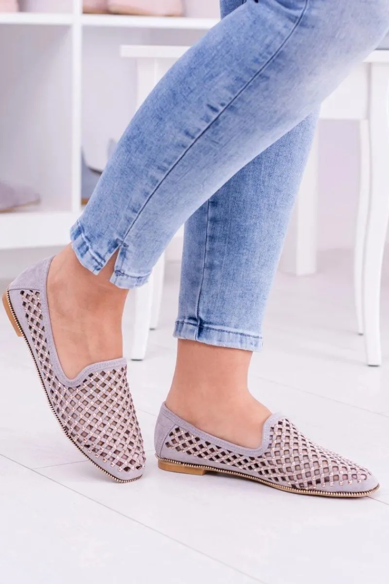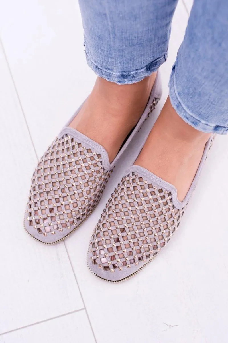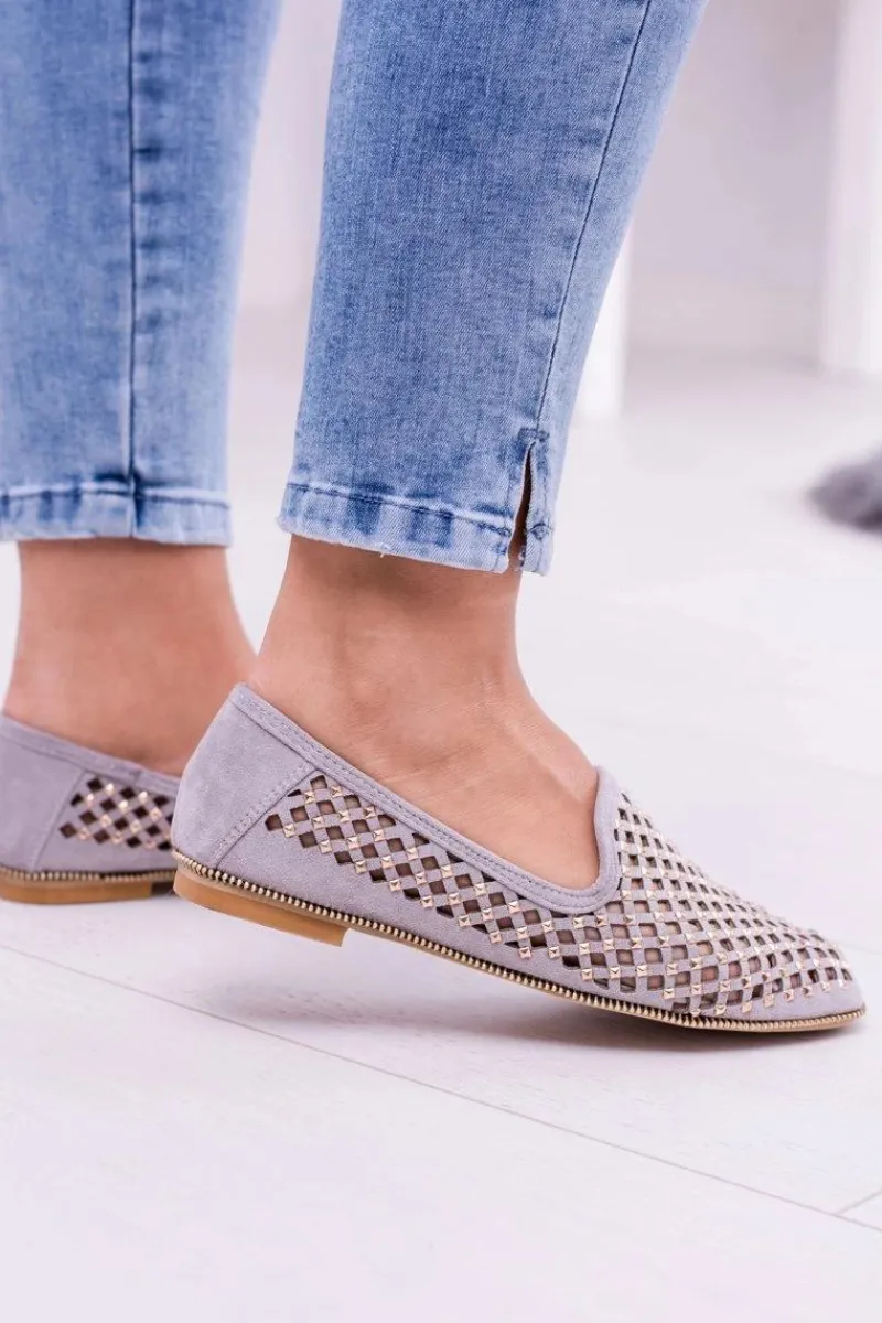 Sale Boto Lu Boo Szare Ażurowe Baleriny Lordsy Ćwieki Carmar