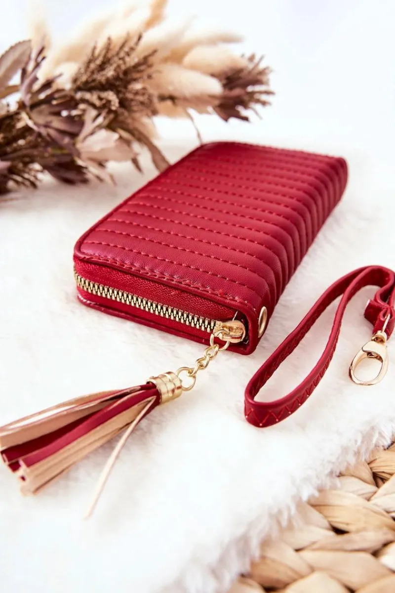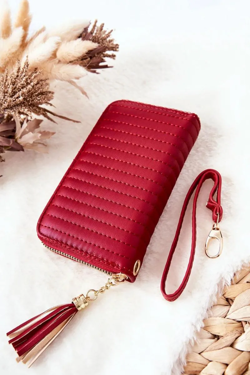Piękny pikowany portfel zapinany na zamek. Pomieści bilony, banknoty oraz wizytówki. Wykonany ze skóry ekologicznej. W środku także posiada zamykaną na suwak kieszonkę. W zestawie dołączony odpinany pasek. Na końcu zewnętrznego suwaka jest przymocowany frędzelek. Spraw prezent sobie lub komuś bliskiemu!