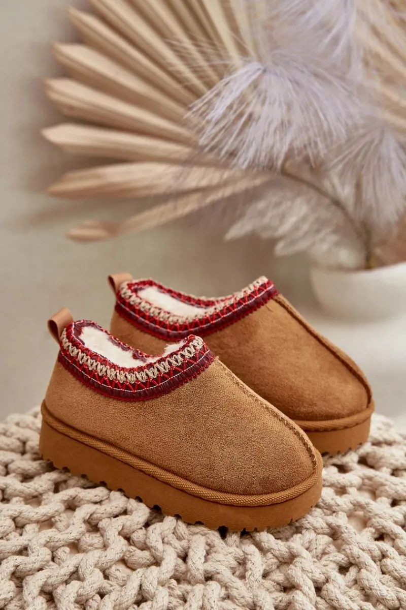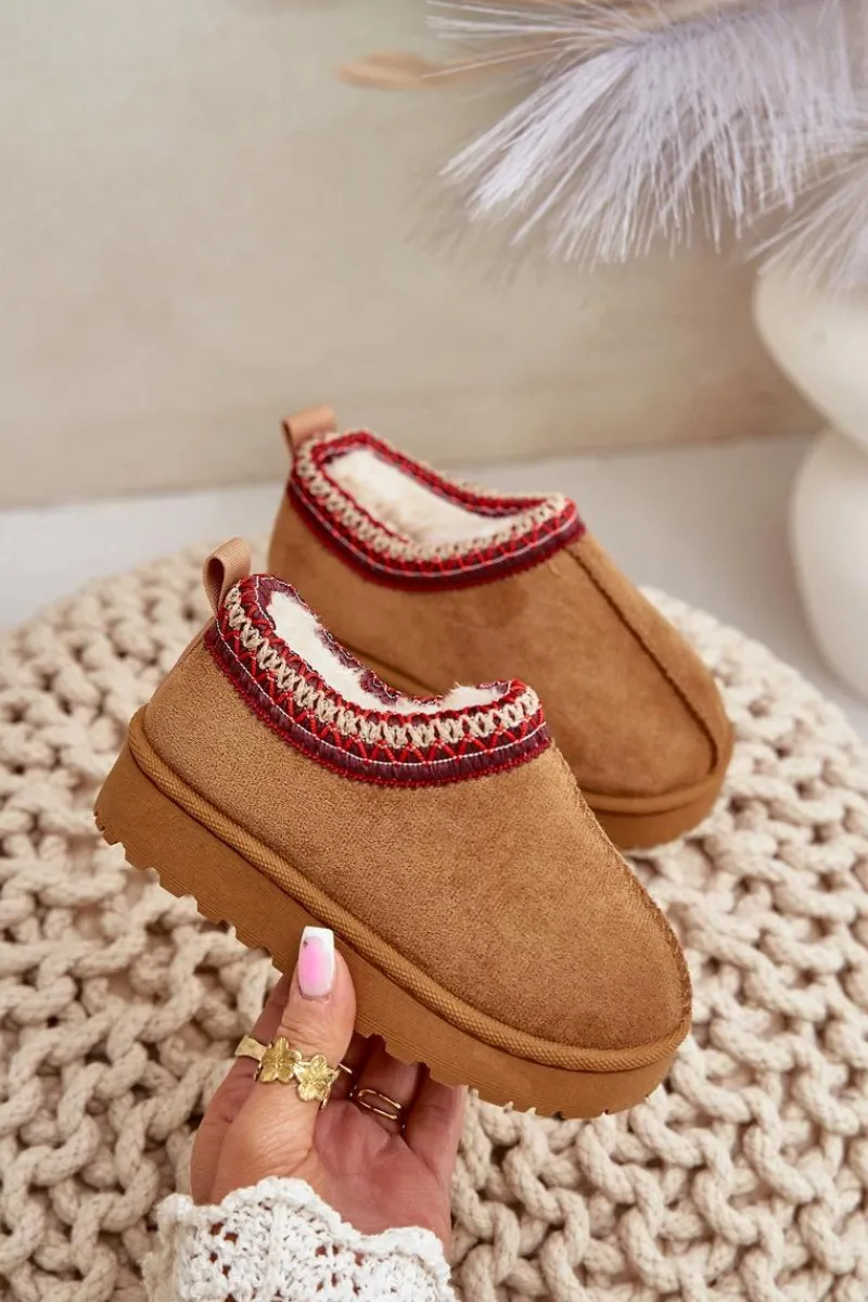 Śniegowce dziecięce z uroczym wzorem na górze cholewki. W środku ocieplone syntetycznym, grubym futerkiem, co zapewni ciepło w najmroźniejsze dni. Wykonane z eko zamszu. Osadzone na grubej podeszwie, która świetnie odizoluje od zimnego podłoża. Model ten dostępny jest również w rozmiarach damskich. Stwórz komplet mama + dziecko! Przy wyborze rozmiaru prosimy kierować tabelą rozmiarów.