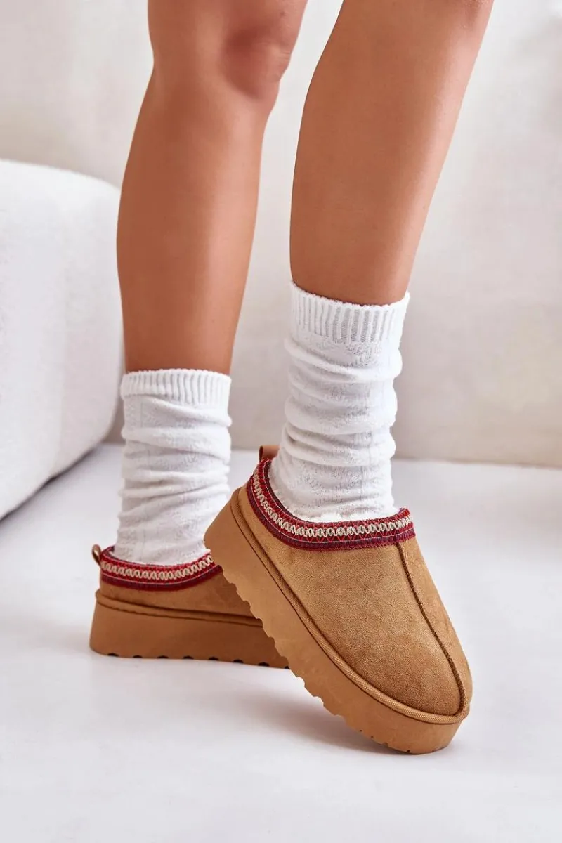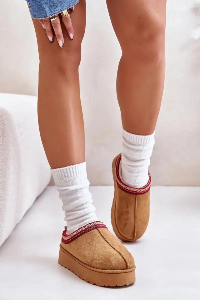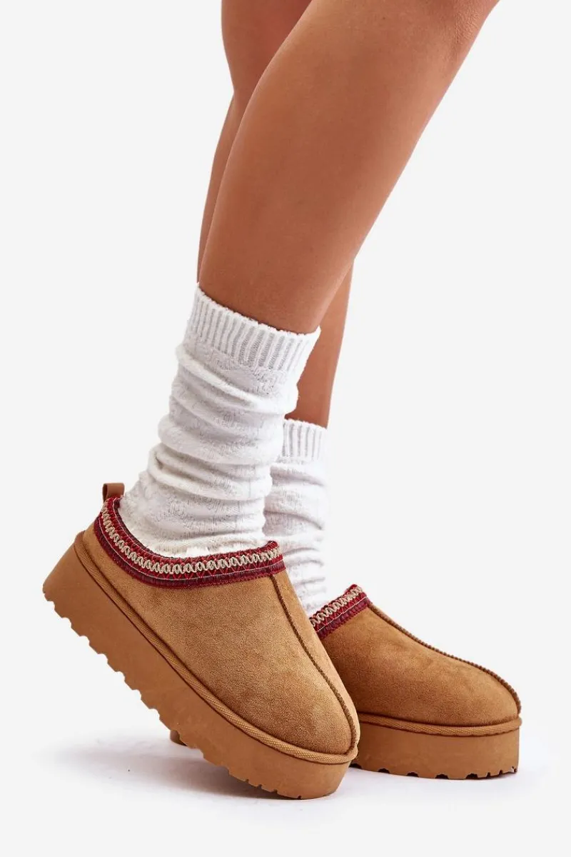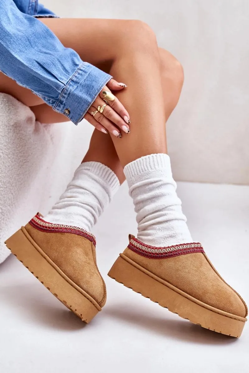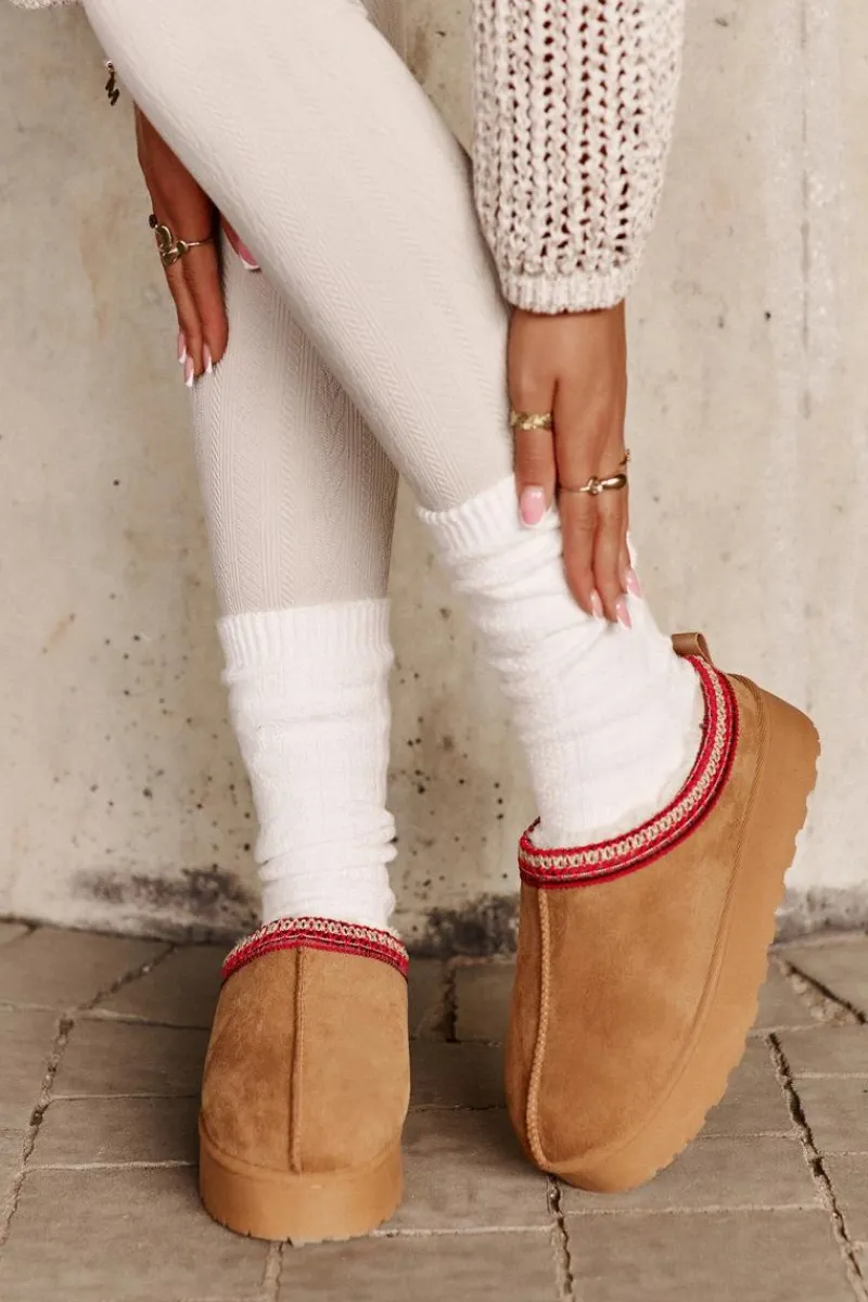 Damskie śniegowce z ozdobną lamówką. Wykonane z eko zamszu, to idealny wybór na chłodniejsze dni. Osadzone na platformie, zapewniają nie tylko styl, ale także komfort i izolację od zimna. Wnętrze butów jest ocieplone miękkim futerkiem, co gwarantuje ciepło i wygodę podczas noszenia. Te śniegowce to połączenie funkcjonalności i modnego wyglądu, doskonałe na zimowe spacery. Przy wyborze rozmiaru prosimy kierować tabelą rozmiarów.