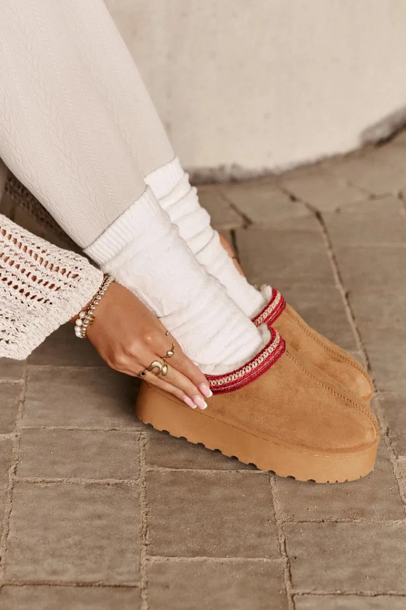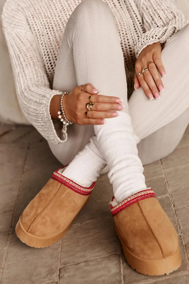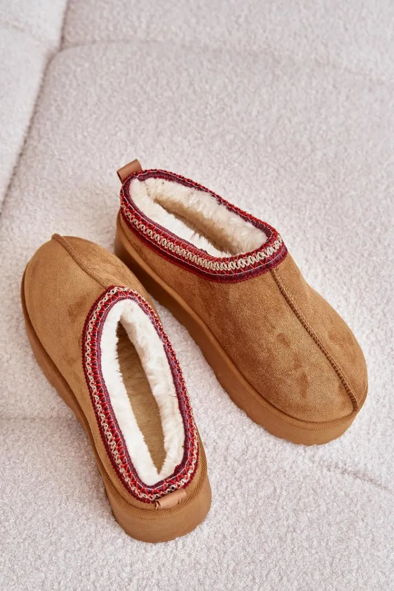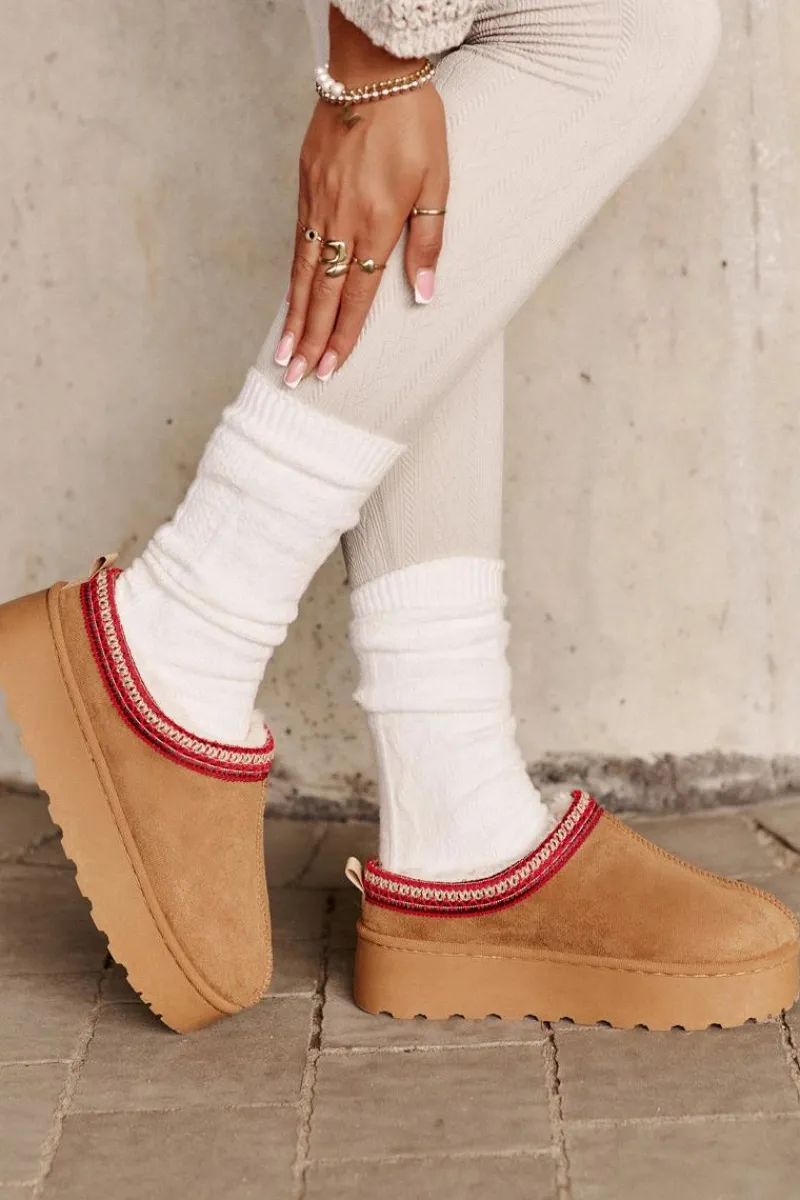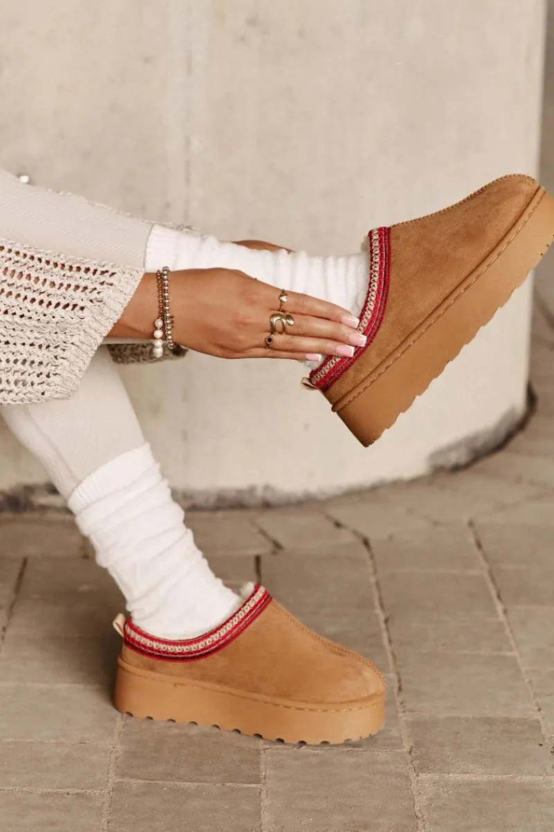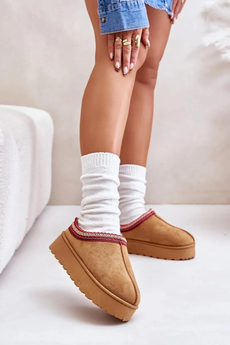 Damskie śniegowce z ozdobną lamówką. Wykonane z eko zamszu, to idealny wybór na chłodniejsze dni. Osadzone na platformie, zapewniają nie tylko styl, ale także komfort i izolację od zimna. Wnętrze butów jest ocieplone miękkim futerkiem, co gwarantuje ciepło i wygodę podczas noszenia. Te śniegowce to połączenie funkcjonalności i modnego wyglądu, doskonałe na zimowe spacery. Przy wyborze rozmiaru prosimy kierować tabelą rozmiarów.