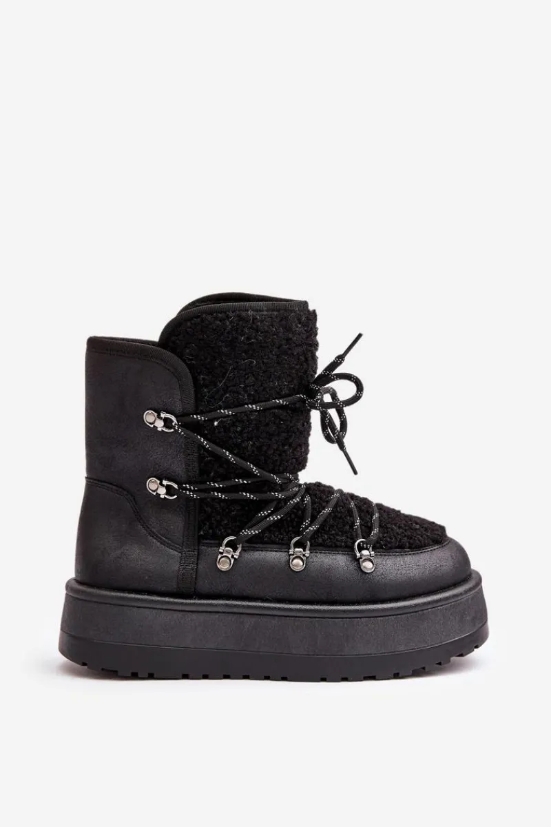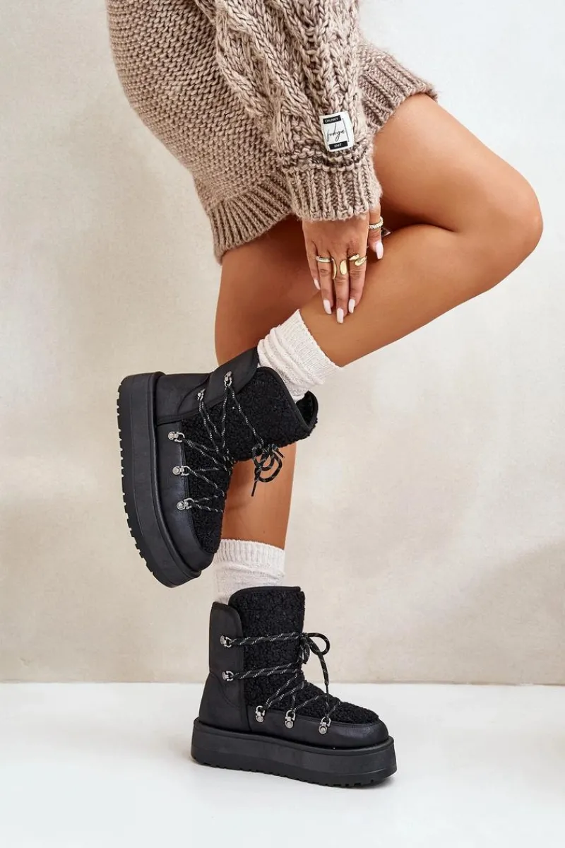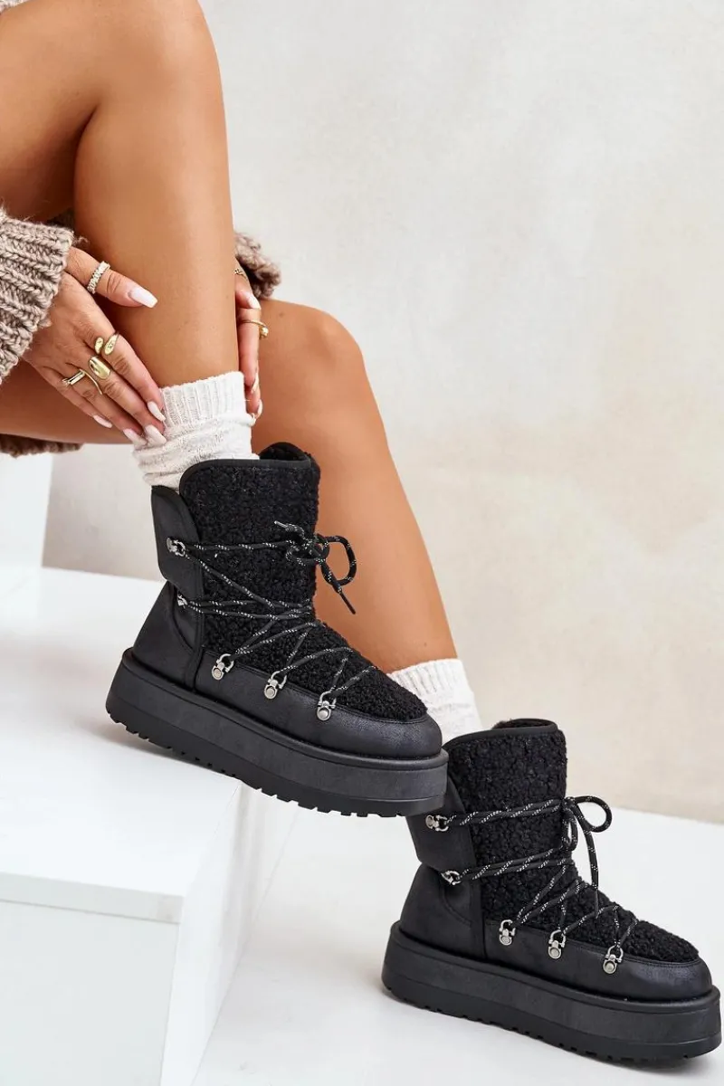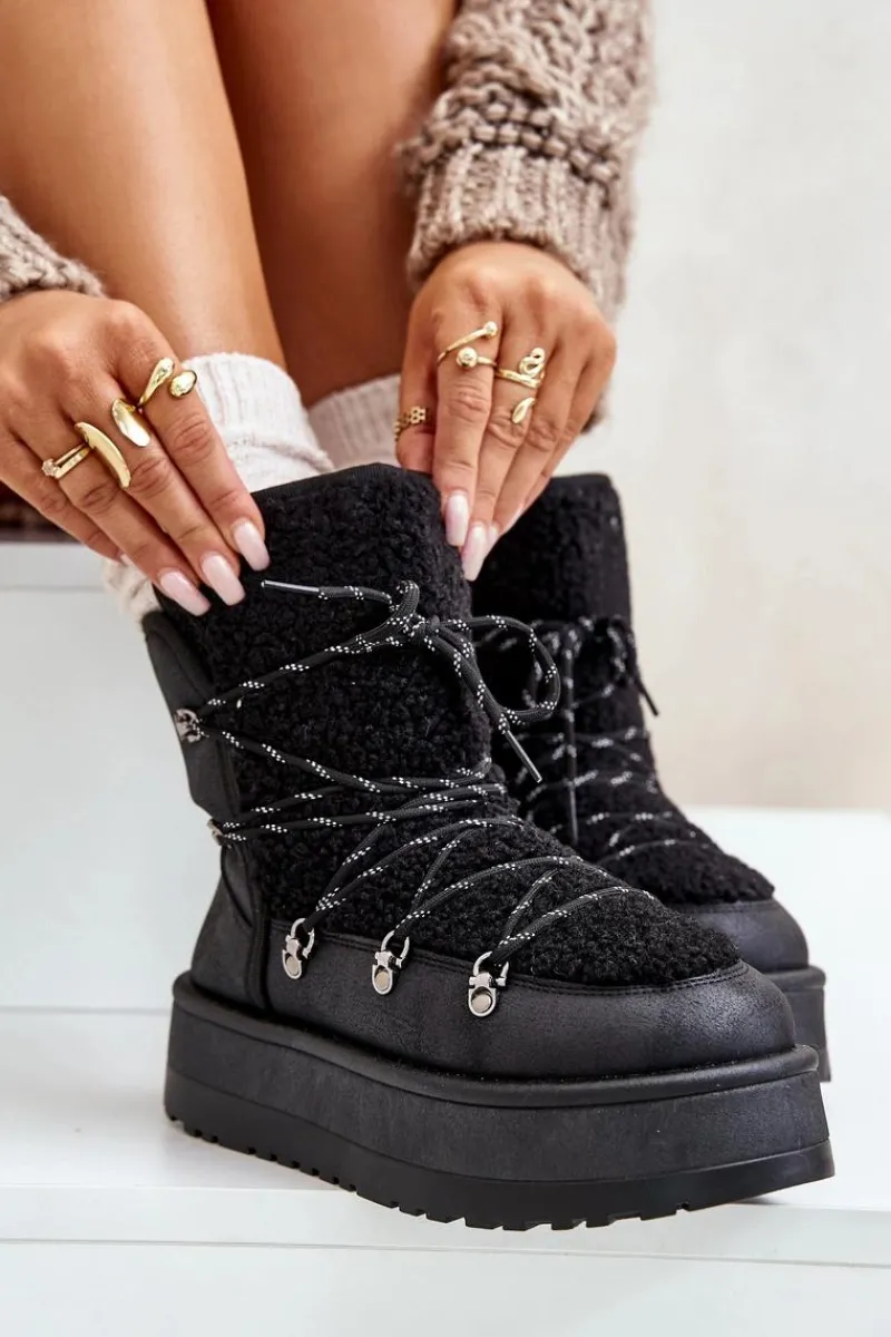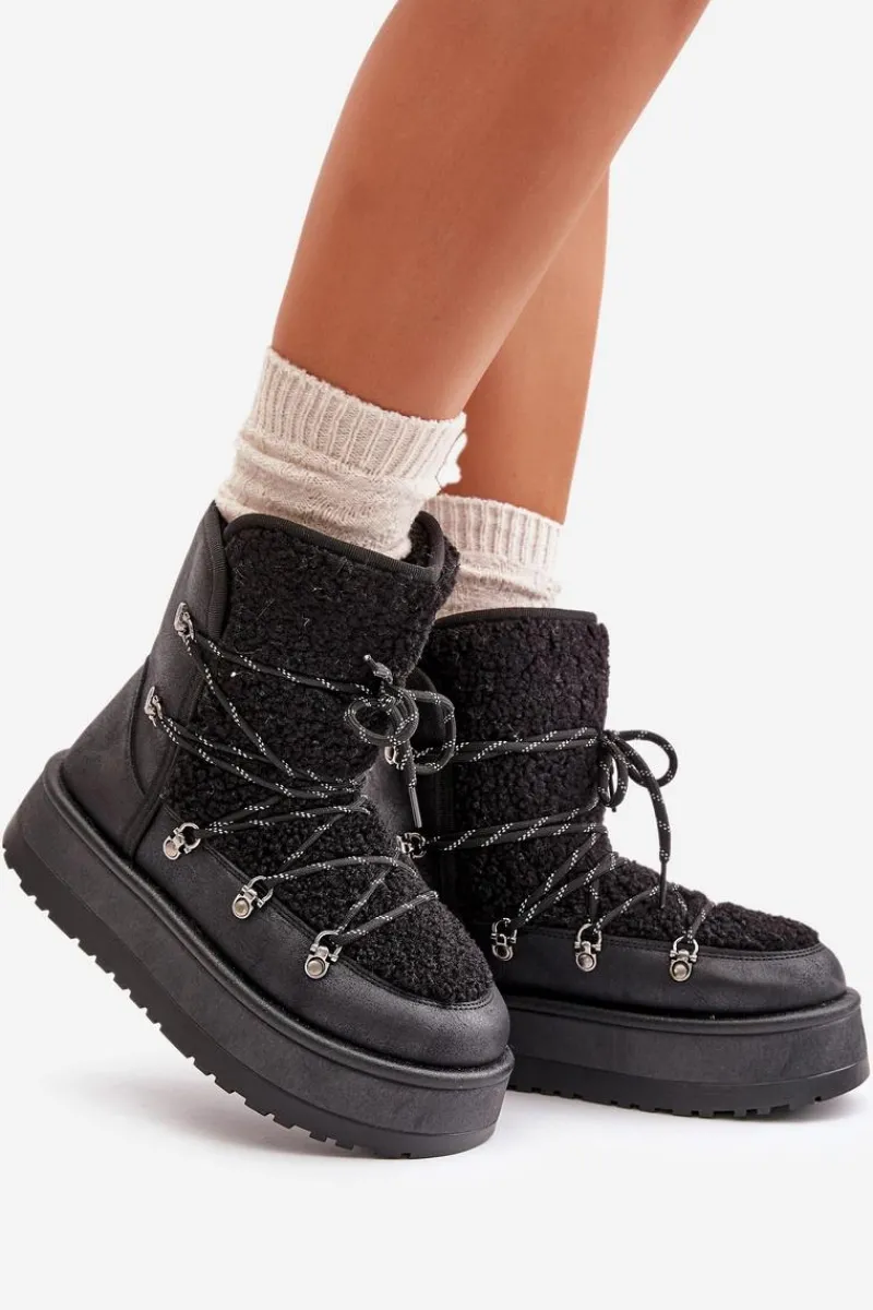 Damskie śniegowce na masywnej platformie, która doskonale odizoluje od zimnego podłoża. Środek ocieplony grubym futerkiem, co zapewni ciepło w mroźne dni. Cholewka z wiązaniem i syntetycznym kożuszkiem. Koniecznie powinnaś je mieć w swojej zimowej garderobie! Przy wyborze rozmiaru prosimy sugerować się tabelą rozmiarów.