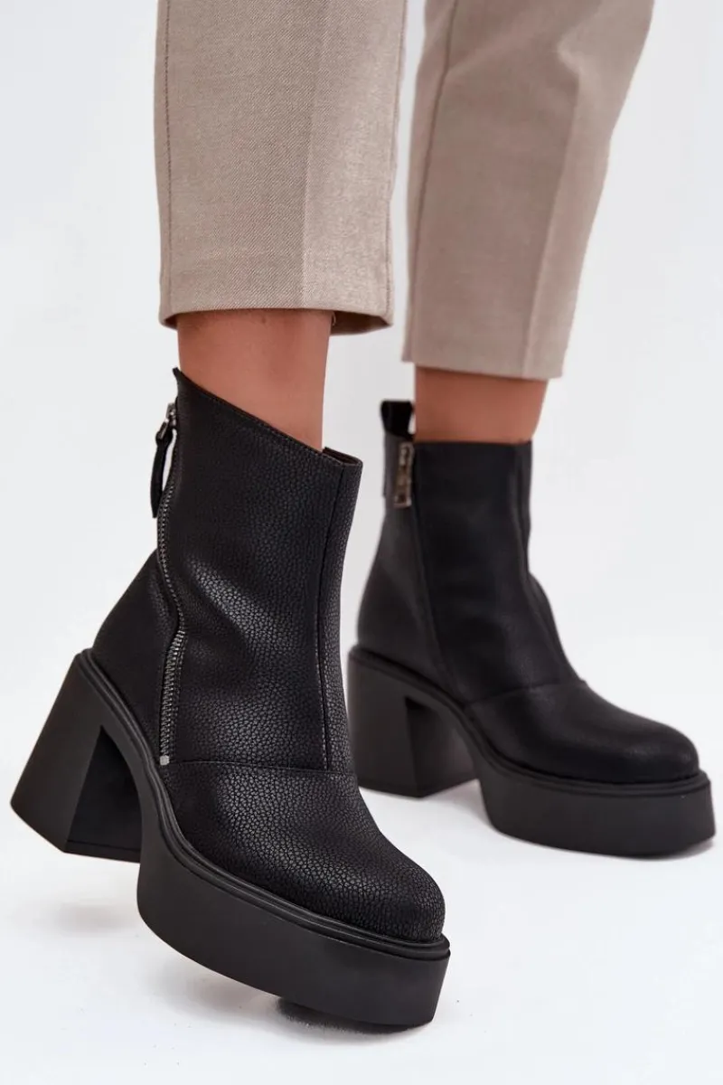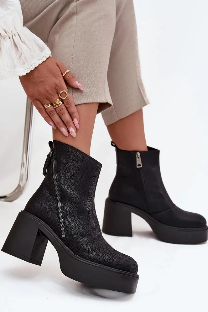 Botki damskie z naturalnej skóry od marki Vinceza to propozycja stworzona z myślą o kobietach, które poszukują elegancji w połączeniu z wygodą i funkcjonalnością. Wykonane ze skóry naturalnej, prezentują się niezwykle stylowo i ponadczasowo, podkreślając charakter każdej stylizacji. Model został osadzony na stabilnym obcasie w formie słupka z dodatkową platformą, co gwarantuje komfort noszenia, a jednocześnie subtelnie wydłuża sylwetkę i dodaje jej lekkości. Botki zapinane są na praktyczny zamek, który ułatwia ich zakładanie i zdejmowanie. Dodatkowo drugi, ozdobny zamek umieszczony z boku cholewki pełni rolę modnego detalu, nadając całości nowoczesnego i oryginalnego charakteru. Wnętrze butów zostało ocieplone miękkim, przyjemnym materiałem, dzięki czemu doskonale sprawdzają się w chłodniejsze dni, zapewniając komfort termiczny i wygodę użytkowania. To model, który świetnie odnajdzie się zarówno w casualowych stylizacjach, jak i bardziej eleganckich zestawach, stając się efektownym i praktycznym elementem damskiej garderoby. Przy wyborze rozmiaru prosimy sugerować się tabelą rozmiarów.