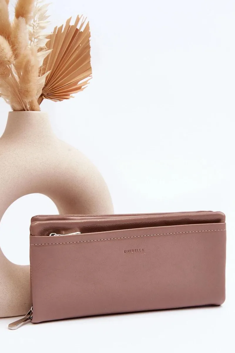 Portfel damski wykonany z eko skóry. Zamykany na wygodny zamek błyskawiczny, co zapewnia łatwe otwieranie i zamykanie. Wewnątrz znajdują się klasyczne przegródki, w tym jedna zasuwana. Dodatkowo model ten posiada odpinany paseczek. To idealny wybór dla osób ceniących prostotę i funkcjonalność!
