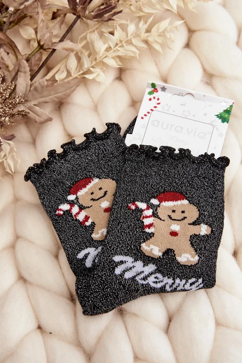 Damskie błyszczące skarpety z motywem świątecznym. Idealnie sprawdzą się jako dodatek do prezentu dla bliskiej osoby! Koniecznie powinnaś zakupić ten model!