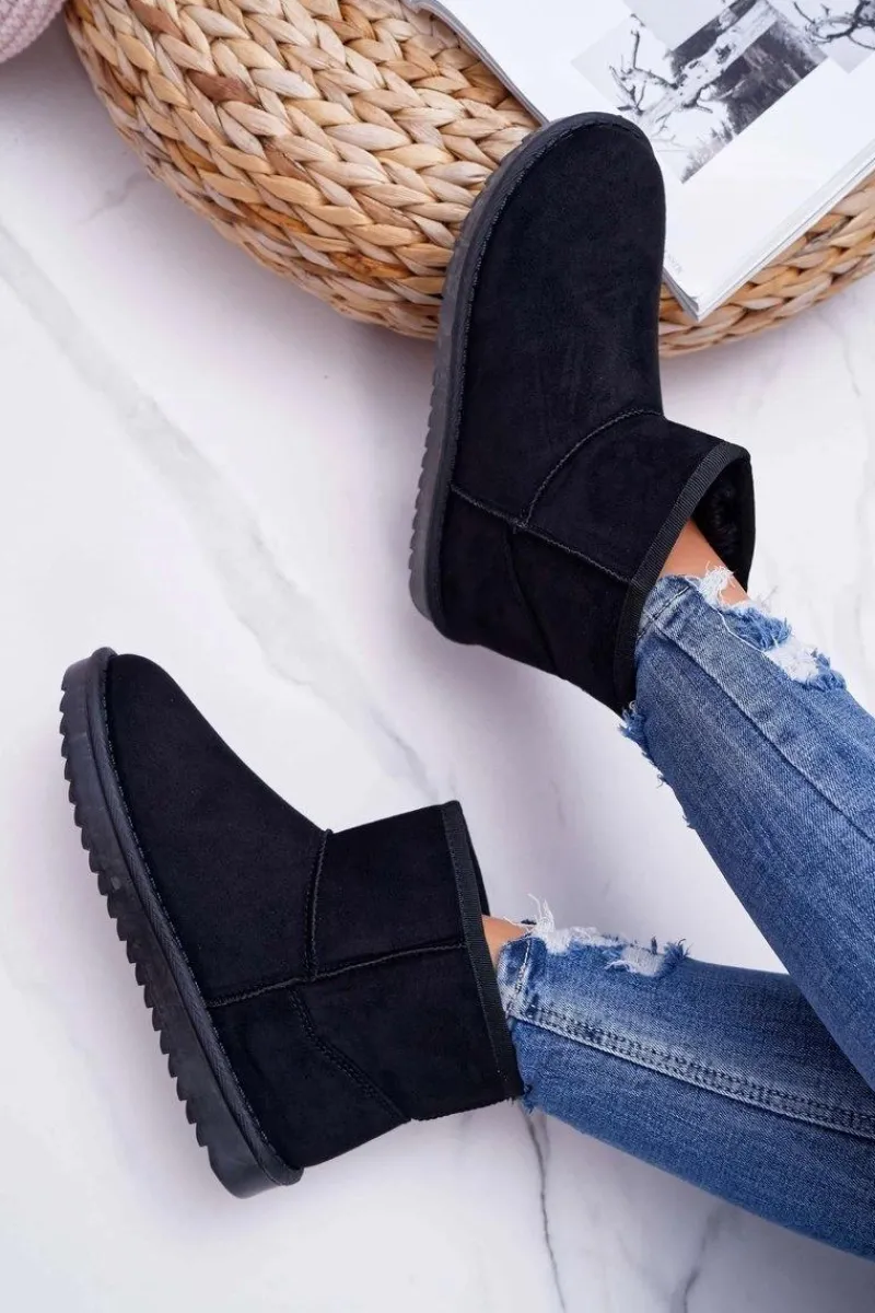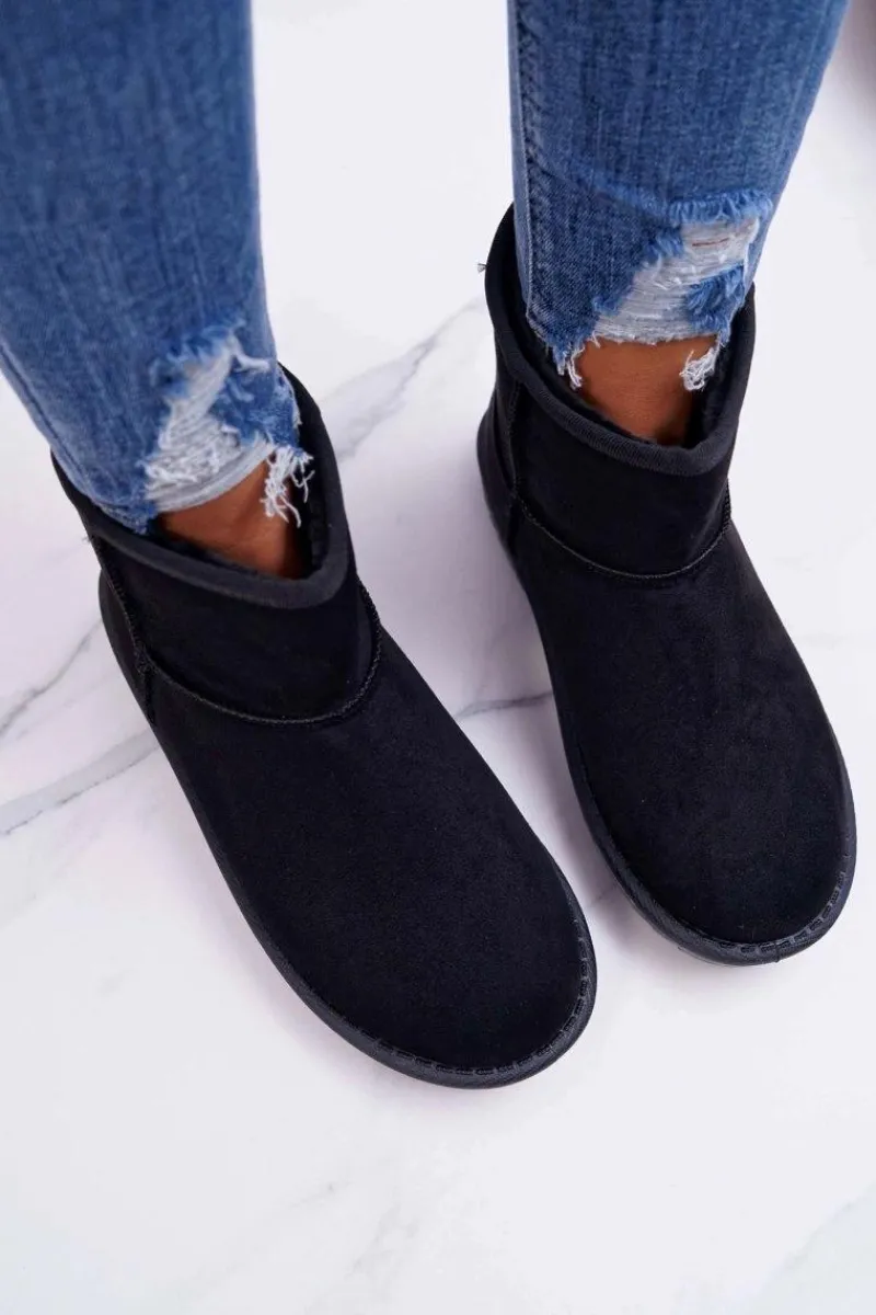 Świetnym wyborem na zimową porę są śniegowce! W szczególności te ocieplone futerkiem, dzięki czemu będziemy czuć komfort nawet w najmroźniejsze dni. Wierzch wykonany z eko zamszu. Miękka podeszwa i futerkowa wkładka dodatkowo izolują nasze stopy od chłodnego podłoża. Przy wyborze rozmiaru prosimy kierować tabelą rozmiarów.