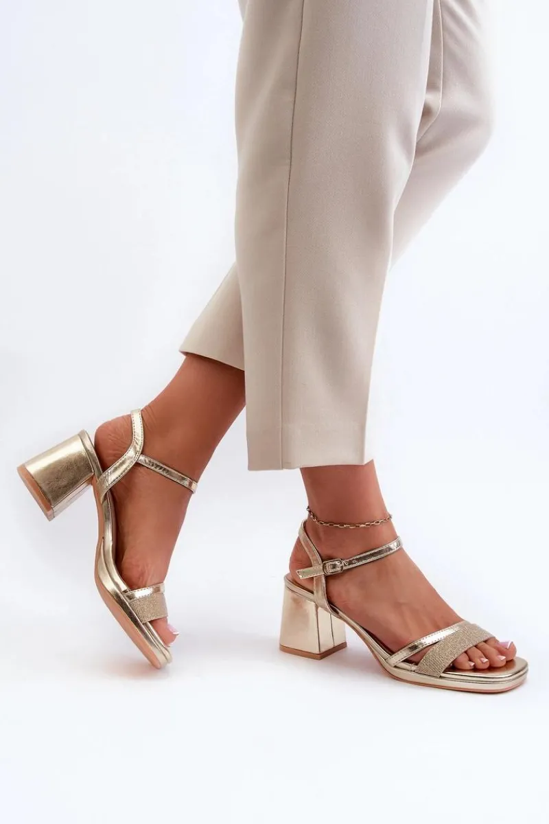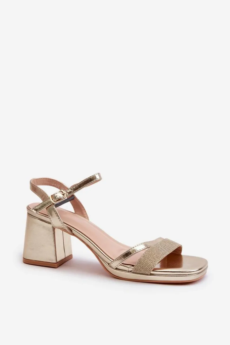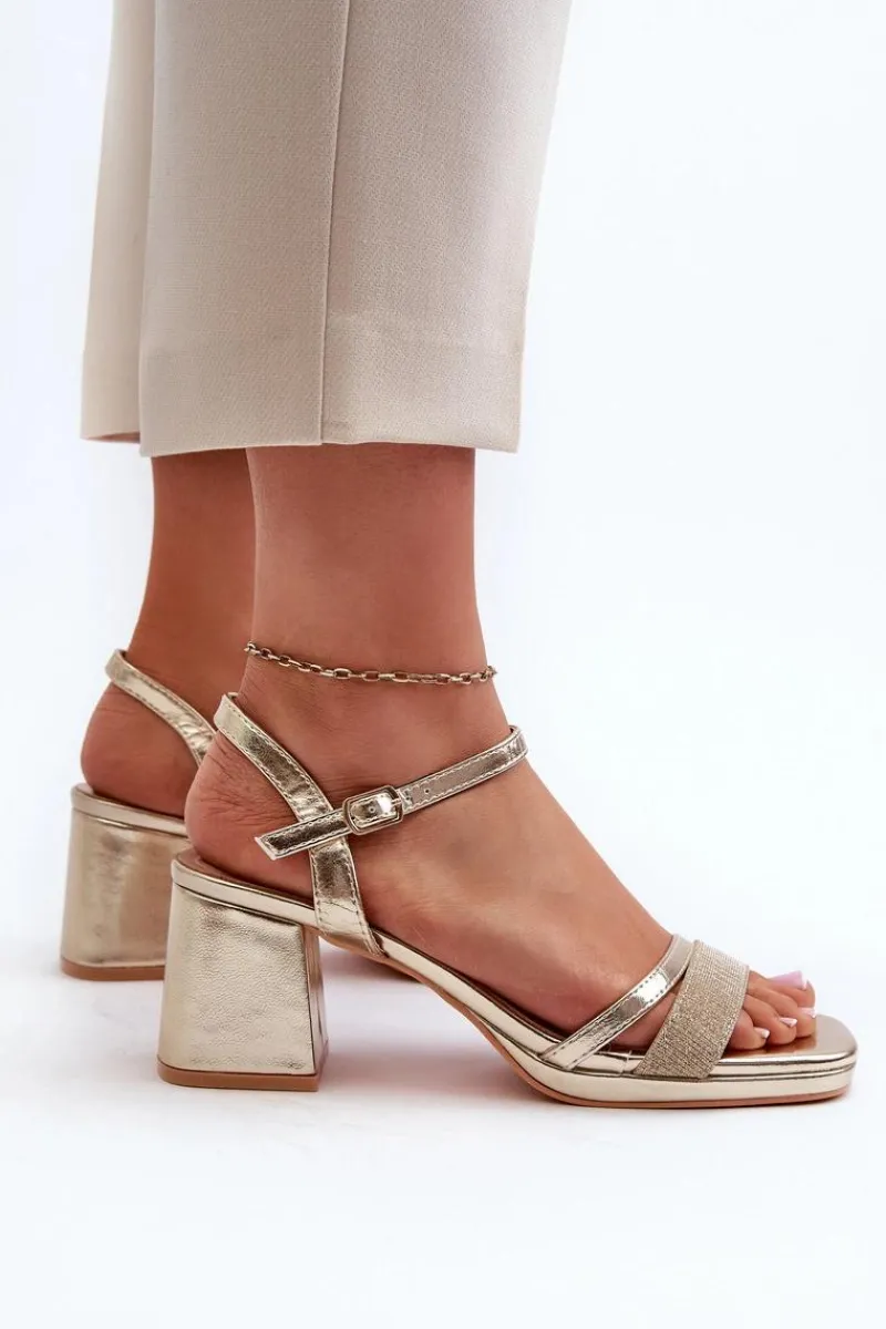 Sandały damskie wykonane z eko skóry. Osadzone na obcasie w postaci słupka. Zapinane na regulowany pasek ze sprzączką, gwarantują idealne dopasowanie do stopy. Z przodu dwa paseczki, dodatkowo jeden obszyty jest błyszczącą nicią, dodając im delikatnego blasku. Te sandały będą doskonałym uzupełnieniem każdej letniej stylizacji! Przy wyborze rozmiaru prosimy sugerować się tabelą rozmiarów.