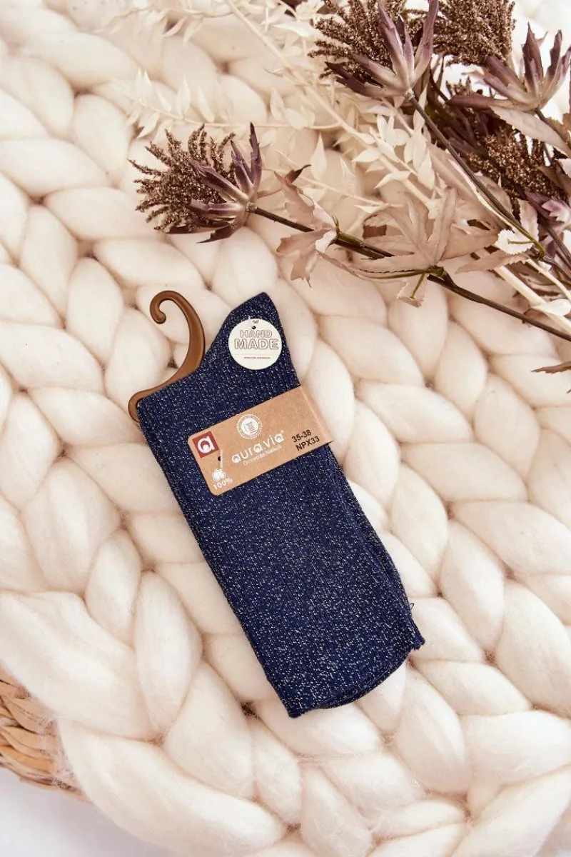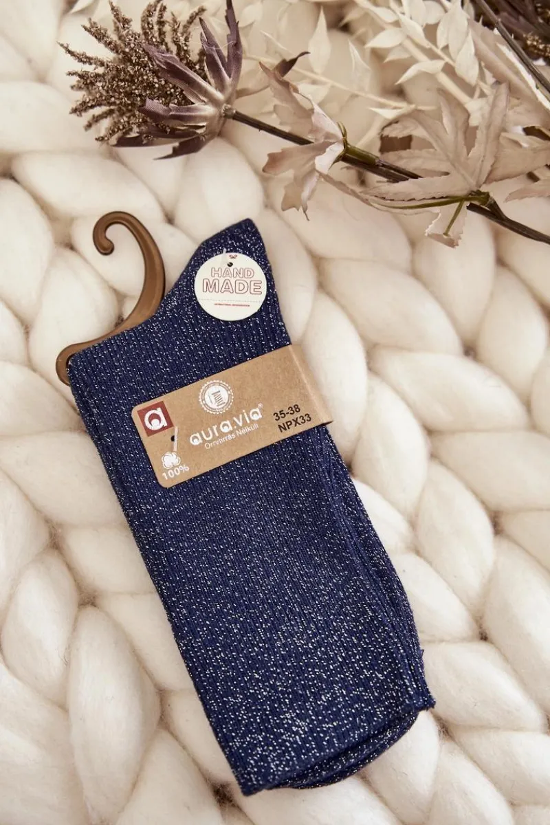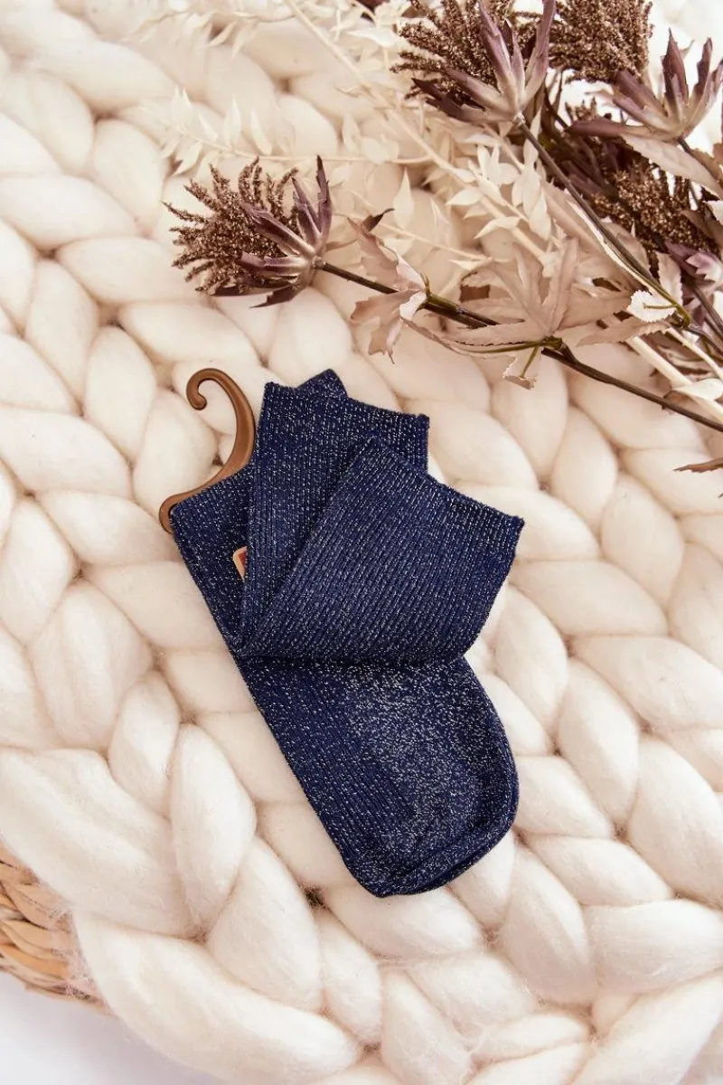 Sale Damskie Skarpetki Antybakteryjne Z Błyszczącą Nicią Granatowe Skarpetki|Skarpetki