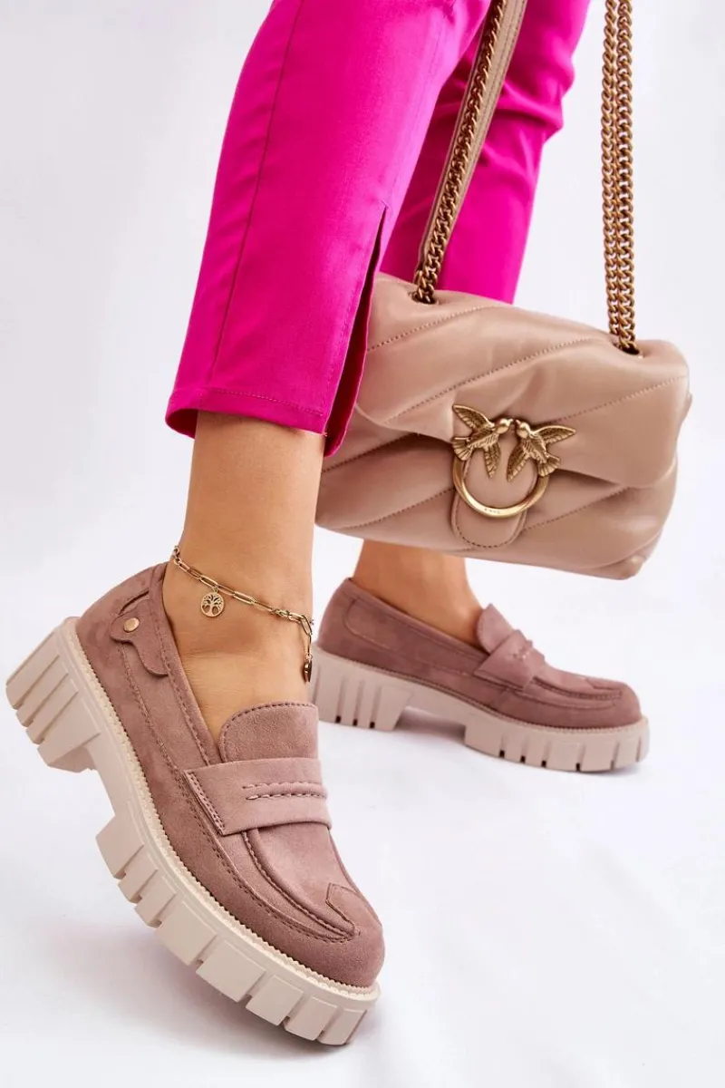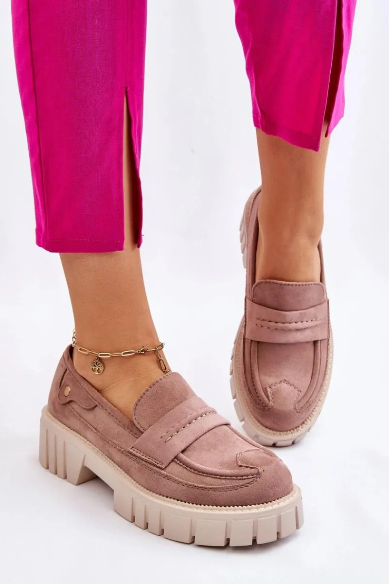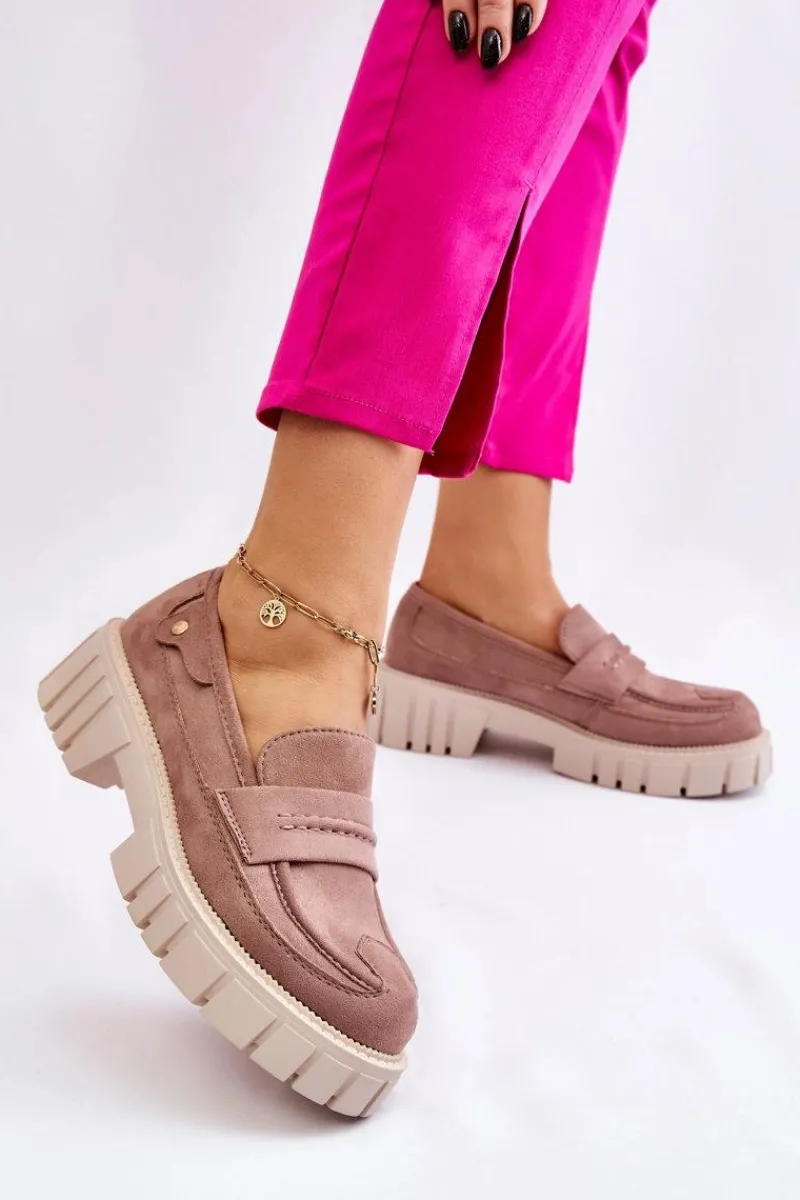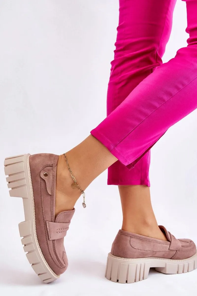 Świetne półbuty w stylu loaferów zostały wykonane z wysokiej jakości eko skóry z obszyciami. Charakterystyczne zdobienie w postaci paseczka na przodzie oraz nitu z boku cholewki. Posiadają masywną platformę oraz płaski obcas. Miękka wykonana z eko skóry wkładka zadba o komfort podczas użytkowania obuwia. Dodatkowo zapiętek jest usztywniany. Przy wyborze rozmiaru prosimy sugerować się tabelą rozmiarów.