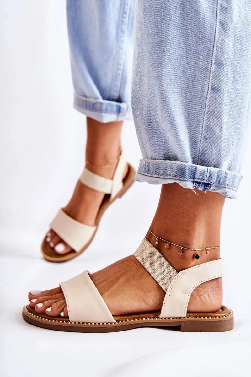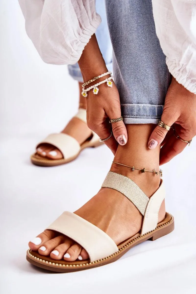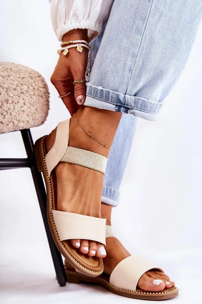 Idealne sandały na upalne dni! Klasyczny, wsuwany model. Buty wykonane z eko skóry. Dodatkowo posiadają ściągacz, dzięki któremu buty odpowiednio dopasują się do tęgości nogi. Wkładka jest miękka i wygodna w użytkowaniu. Buty osadzone na płaskim obcasie, z podeszwą antypoślizgową. Dodatkowo sandałki są przyozdobione dżetami. Nosek odkryty, zaokrąglony. Świetnie sprawdzą się podczas codziennego użytkowania. Przy wyborze rozmiaru prosimy kierować się tabelą rozmiarów.