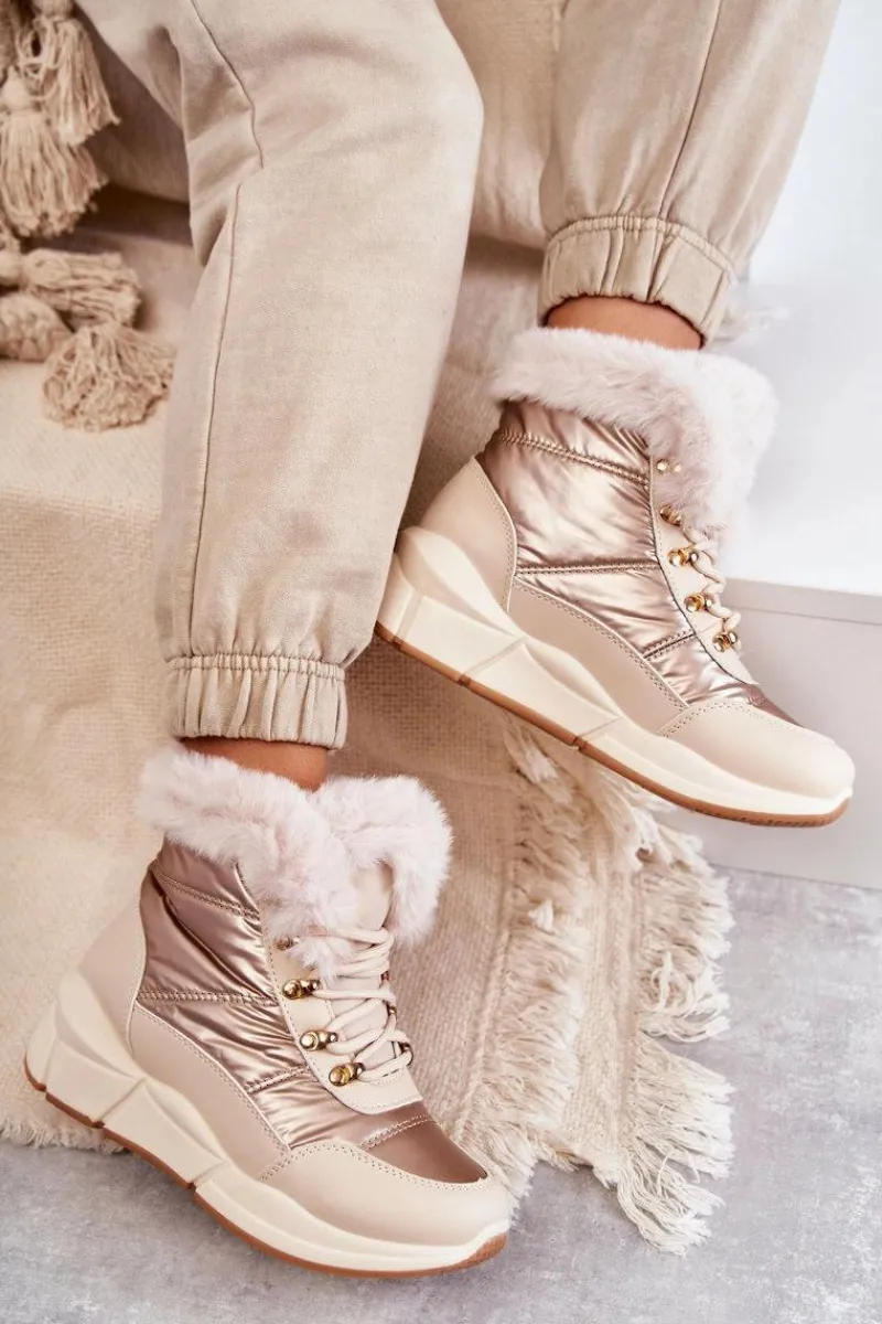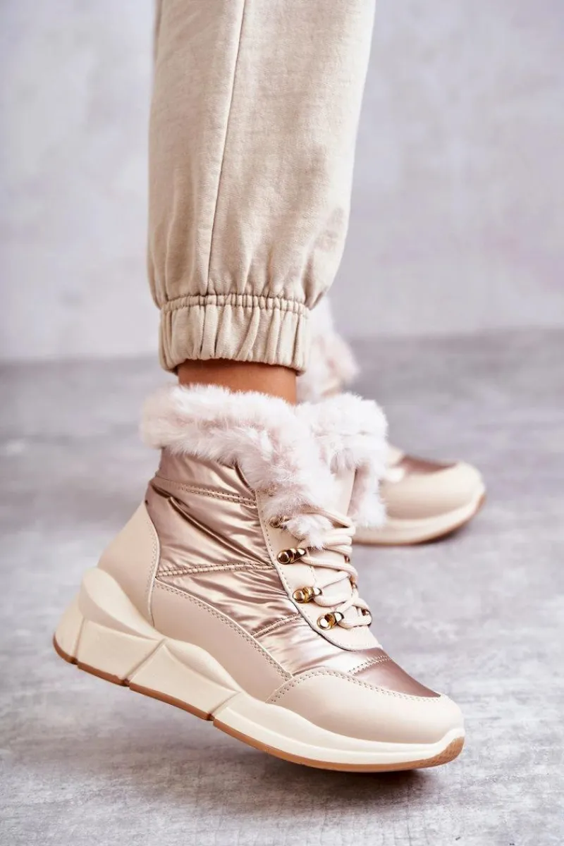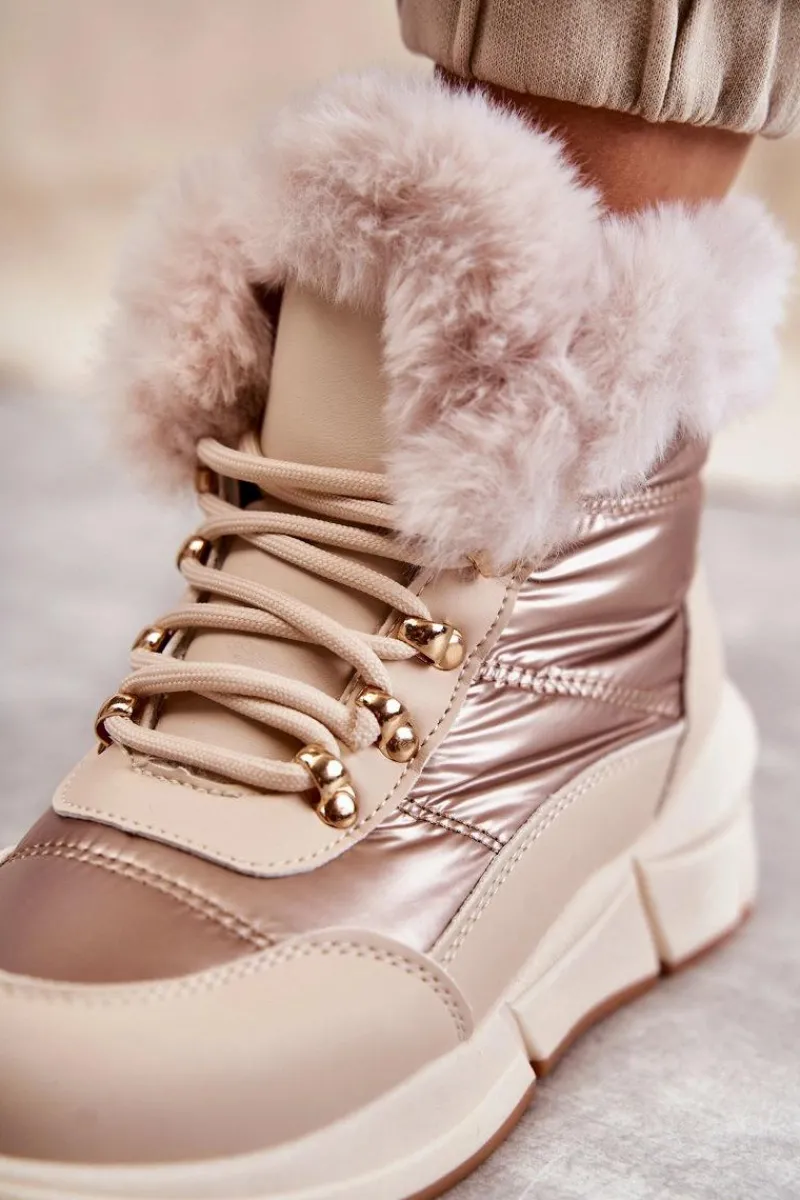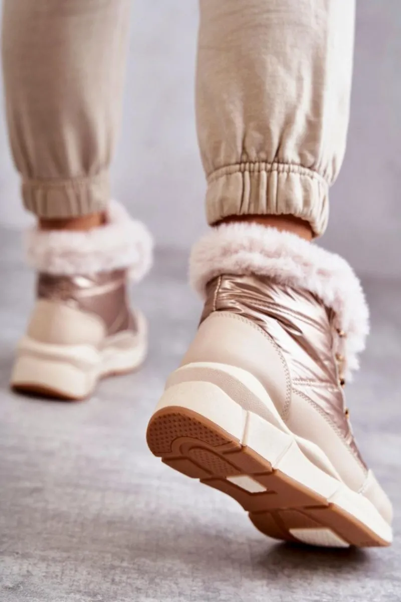 Modne śniegowce zostały wykonane z materiału odpornego na zimno i wiatr. Cholewka zakończona sztucznym futerkiem. Model klasycznie sznurowany. Śniegowce zostały osadzone na masywnej platformie. Posiadają w środku ocieplenie w postaci grubego futerka. Niezwykle ciepłe, a zarazem stylowe. Powinnaś je mieć! Idealnie uzupełnią każdą zimową stylizację! Przy wyborze rozmiaru prosimy sugerować się tabelą rozmiarów.