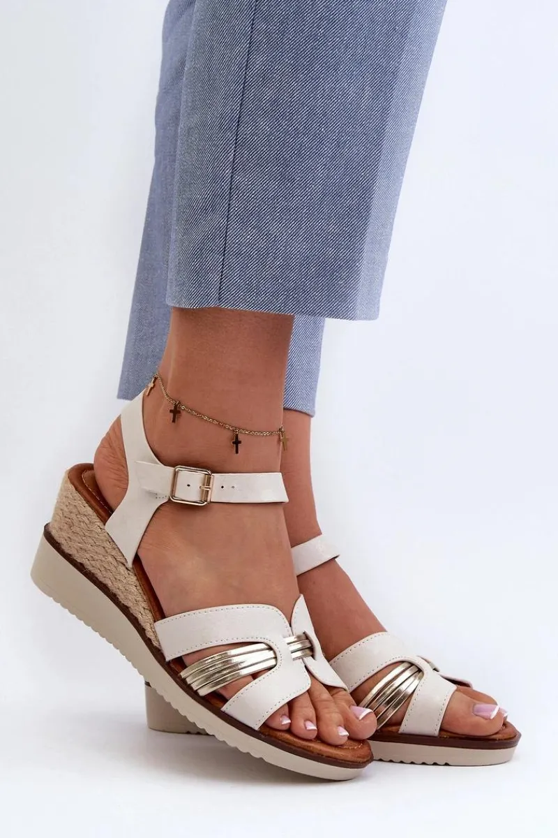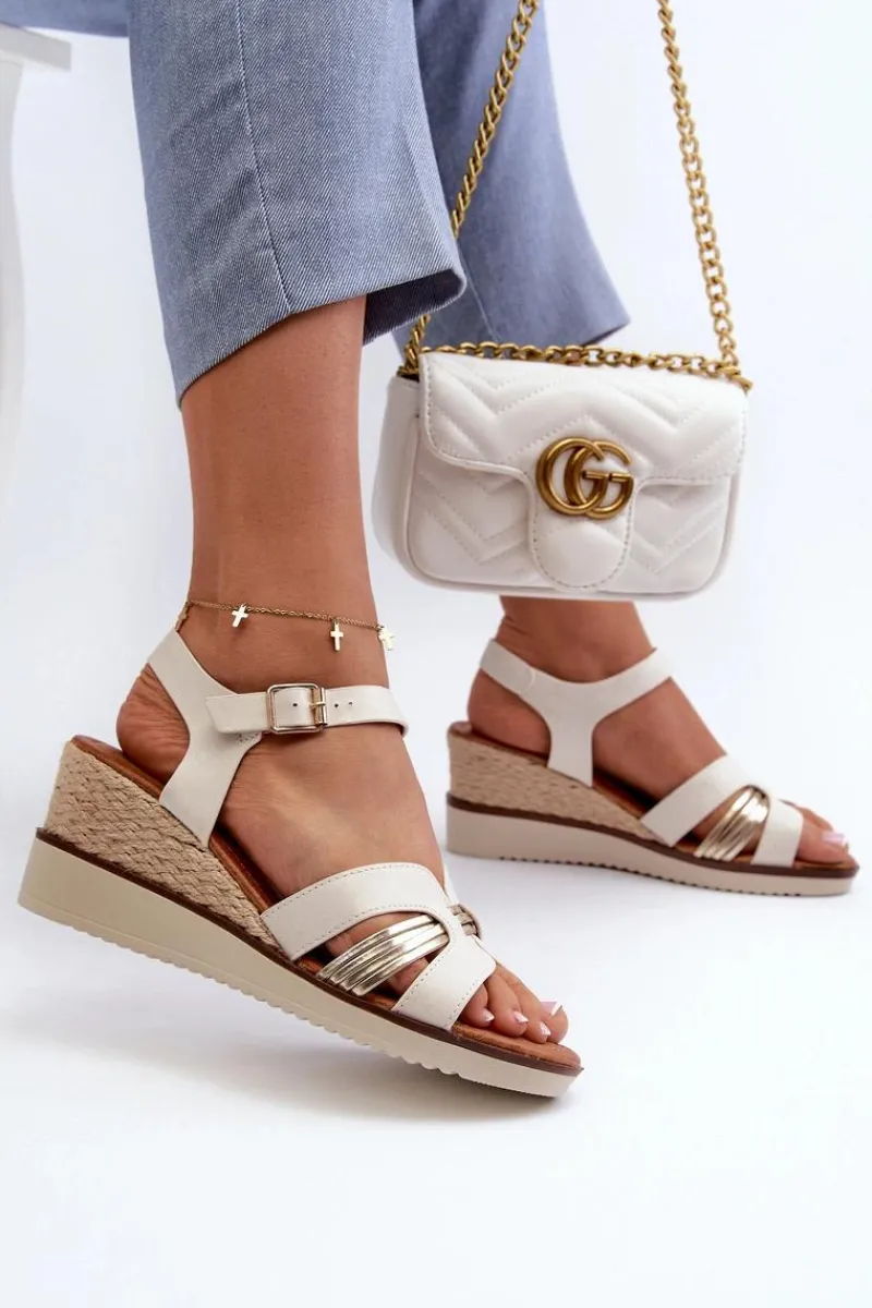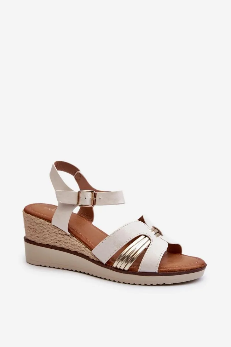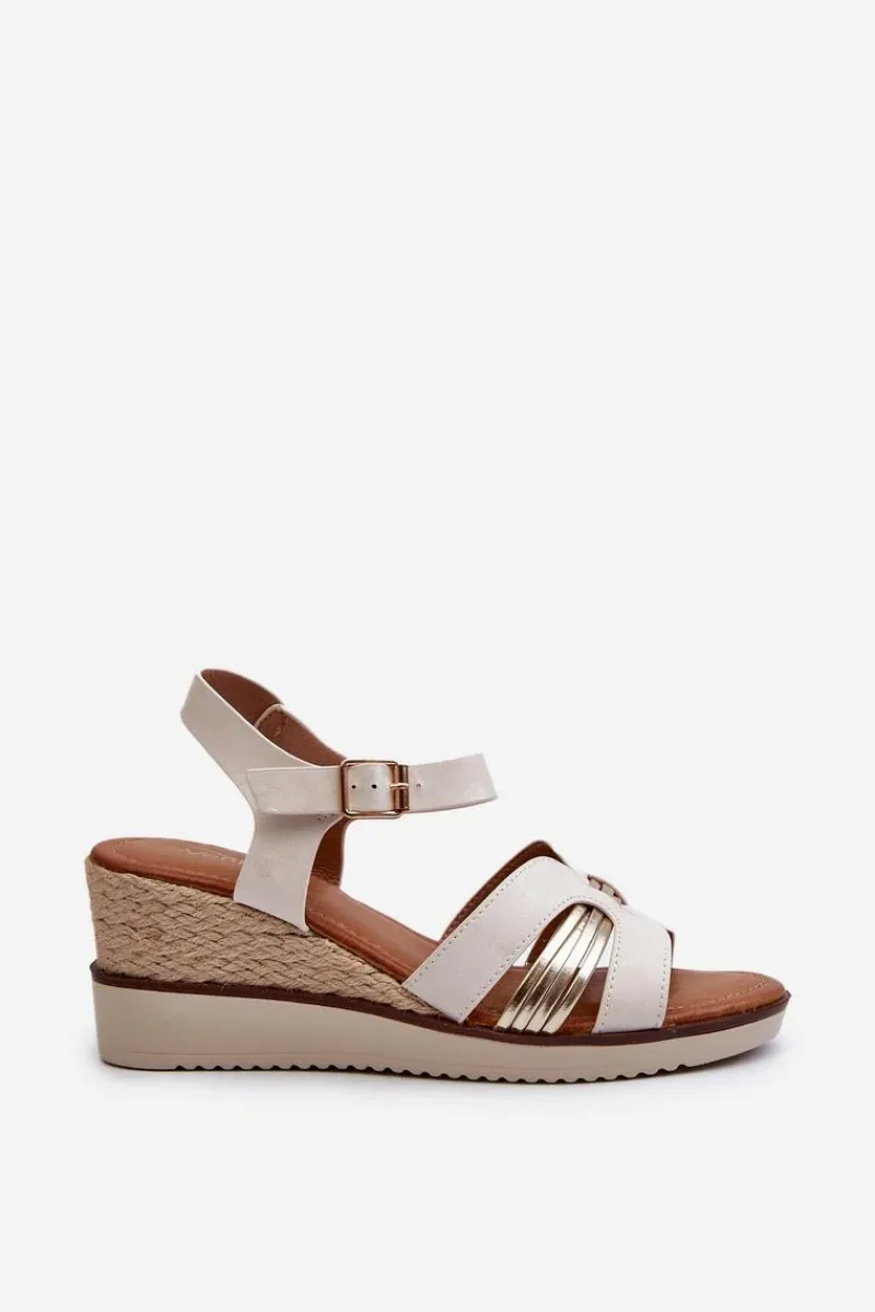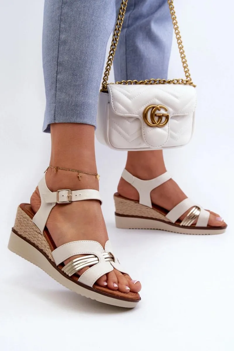 Sale Evento Sandały Damskie Na Koturnie Z Plecionką Złote Starlenna