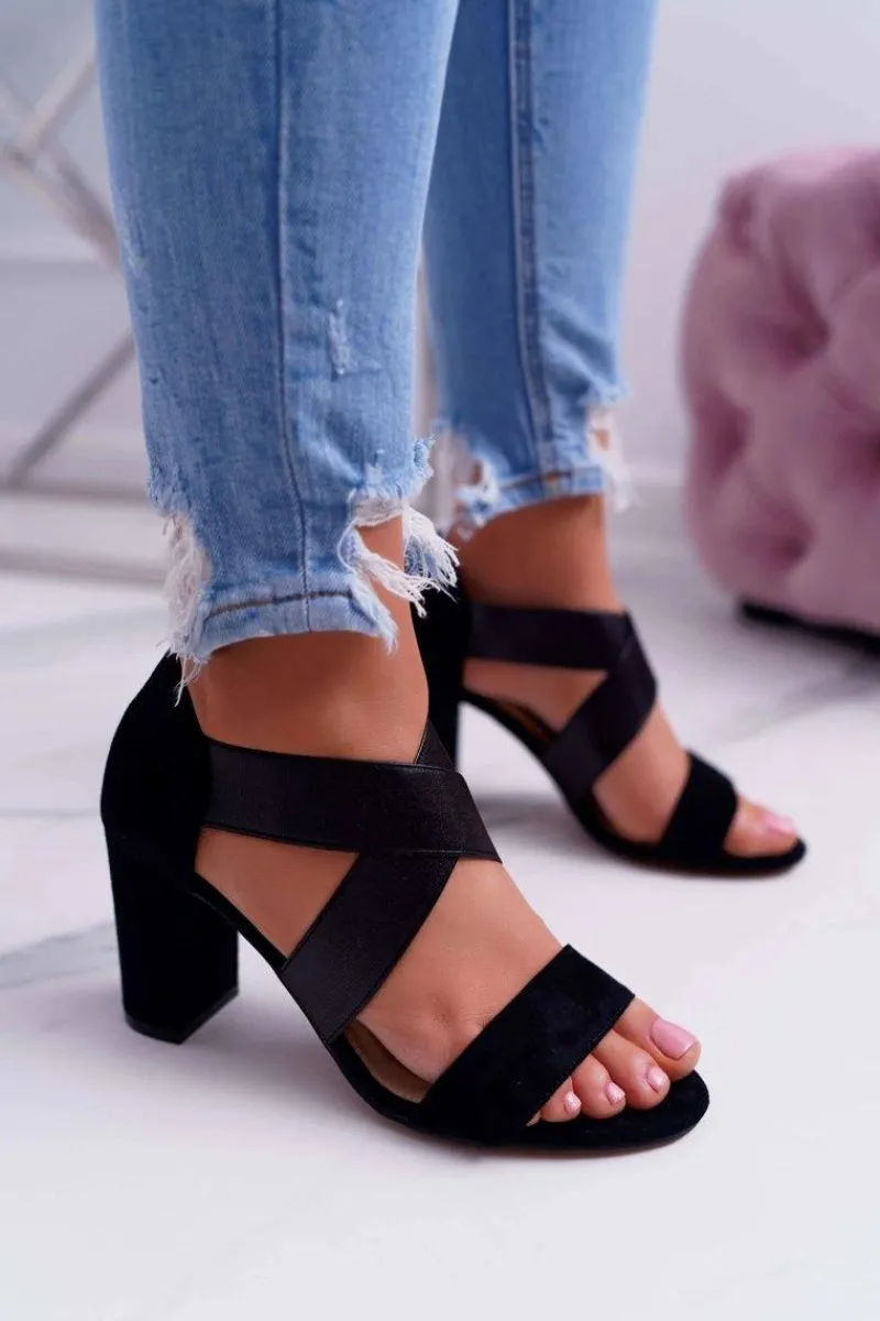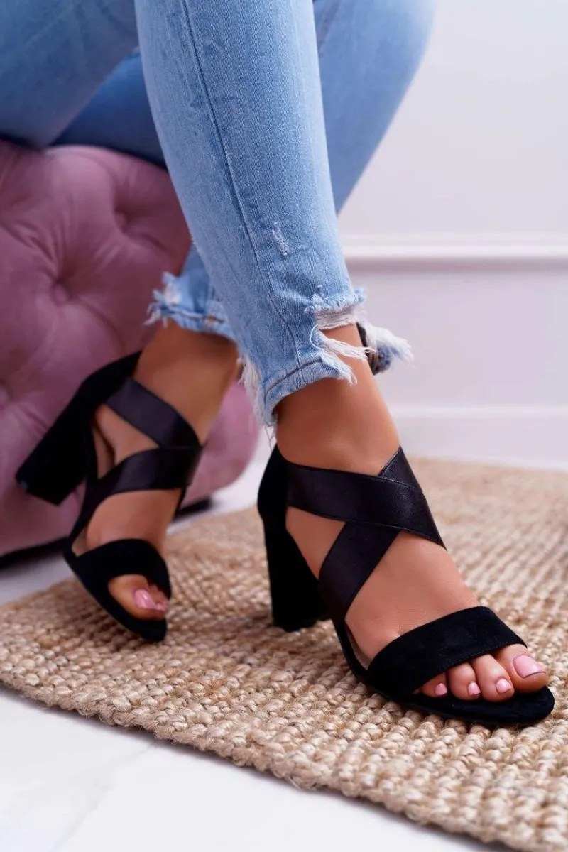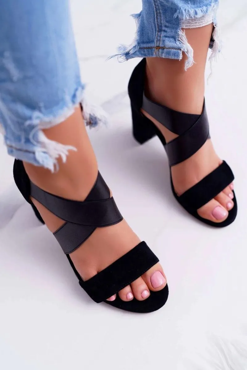 Klasyczne a zarazem eleganckie sandały, sprawdzą się w każdej codziennej sytuacji. Wsuwane z elastycznymi gumkami. Idealne dopełnienie letnich stylizacji. Stabilny słupek uniesie i subtelnie podkreśli naszą figurę. Przy wyborze rozmiaru prosimy sugerować się tabelą rozmiarów.