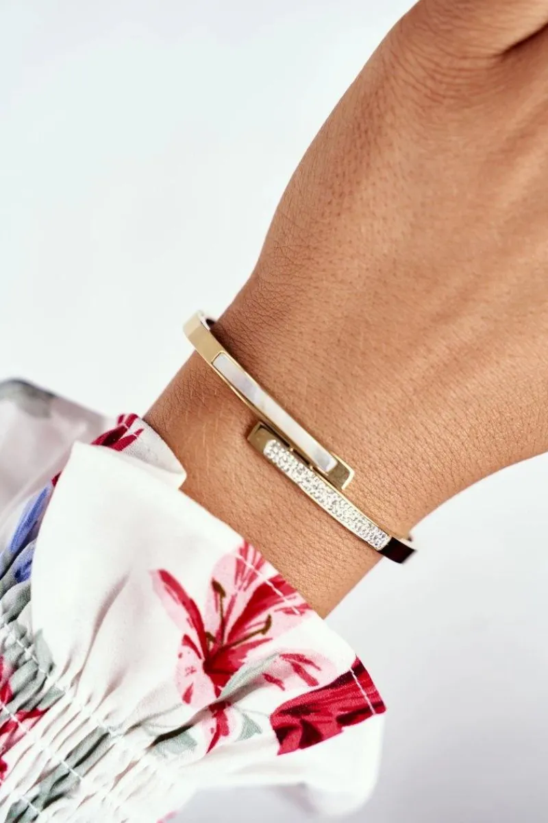 Sale Glam Chic Damska Bransoleta Stalowa Z Cyrkoniami Złota Sekvana