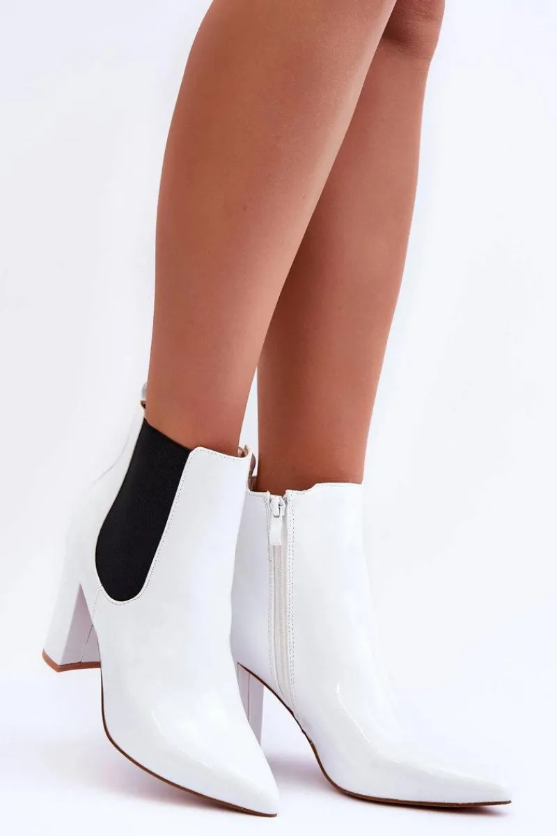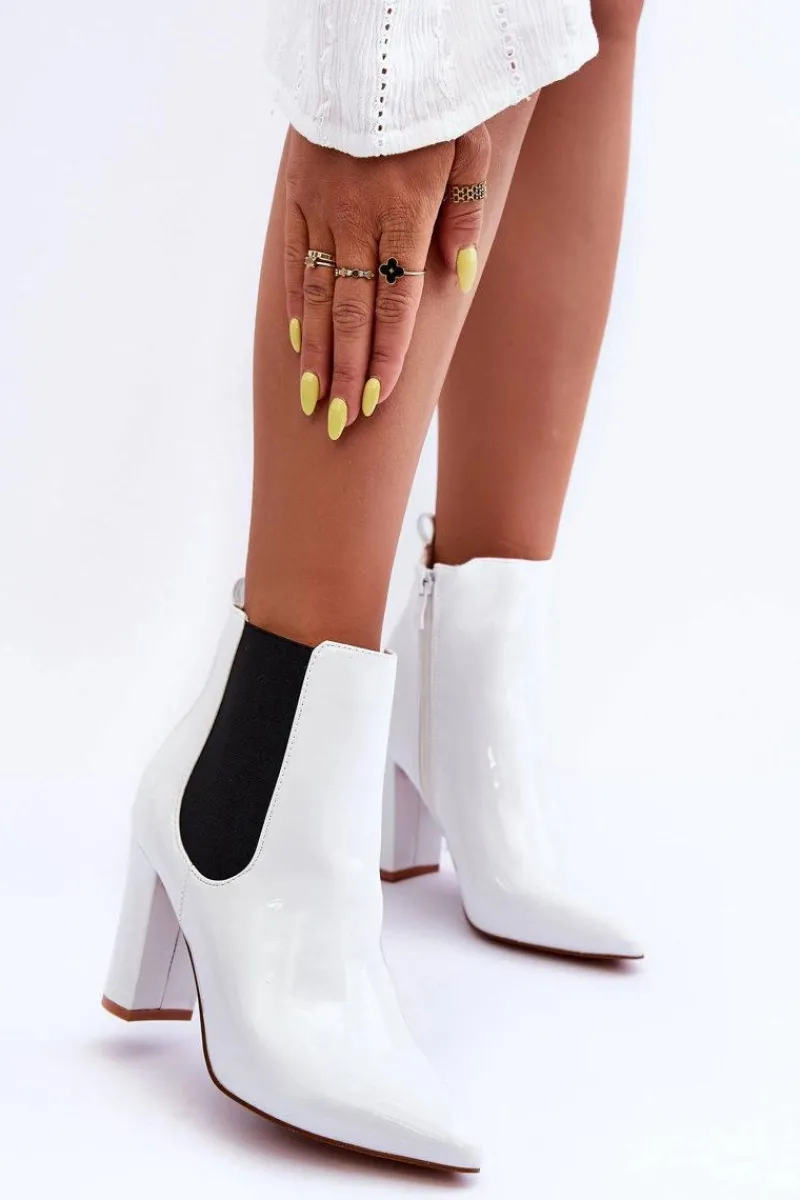 Klasyczne botki damskie zostały wykonane z eko skóry. Z boku cholewki znajduje się suwak ułatwiający zakładanie obuwia. Obcas w postaci słupka zapewni stabilność na każdym kroku. Fason ten sprawia, że możesz założyć je do wielu stylizacji. Nosek w kształcie szpica. Buty posiadają także usztywniany zapiętek oraz zostały ocieplone kocem obuwniczym. Przy wyborze rozmiaru prosimy sugerować się tabelą rozmiarów.