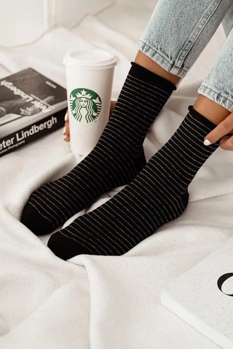 Sale Milena Damskie Skarpetki Bezuciskowe W Cienkie Paseczki Czarne