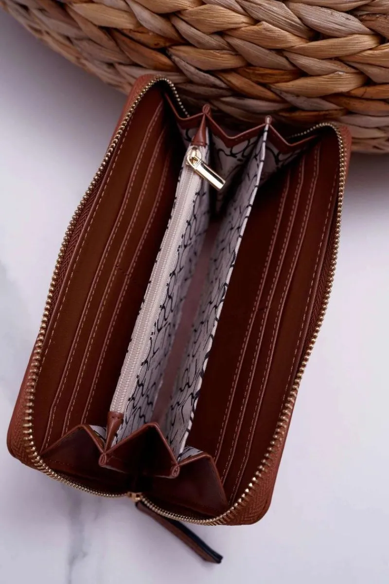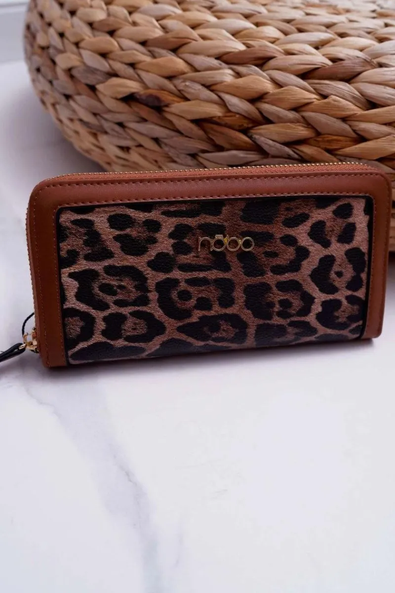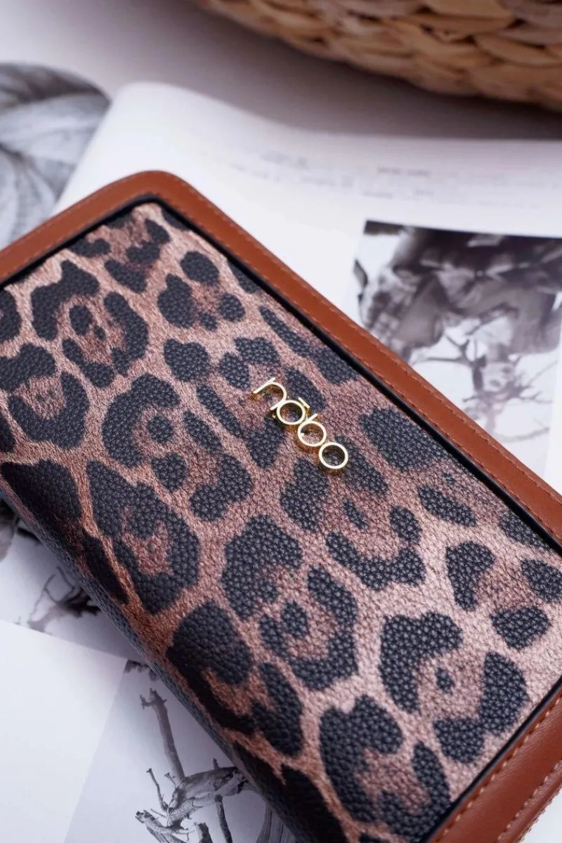 Elegancki damski portfel renomowanej marki NOBO. Klasyczny wzór w panterkę wykonany ze skóry ekologicznej. Portfel zapinany na suwak. Wewnątrz znajduje się miejsce na 8 kart bądź innych dokumentów oraz cztery komory z czego jedna zapinana jest na suwak. Portfel zapakowany jest w eleganckie czarne pudełko z logiem marki.