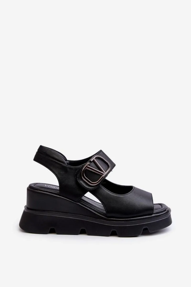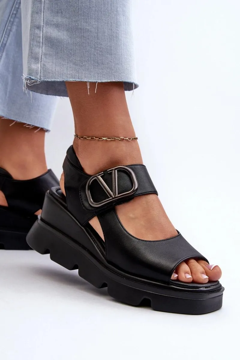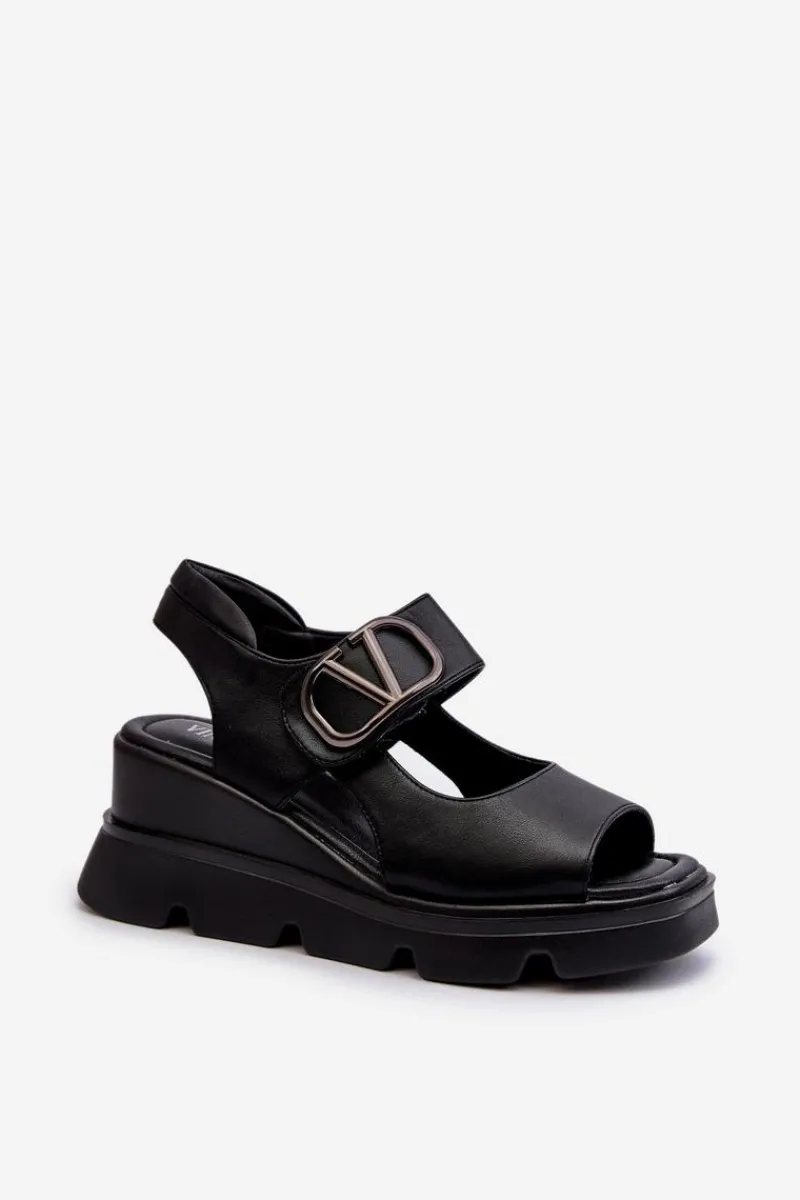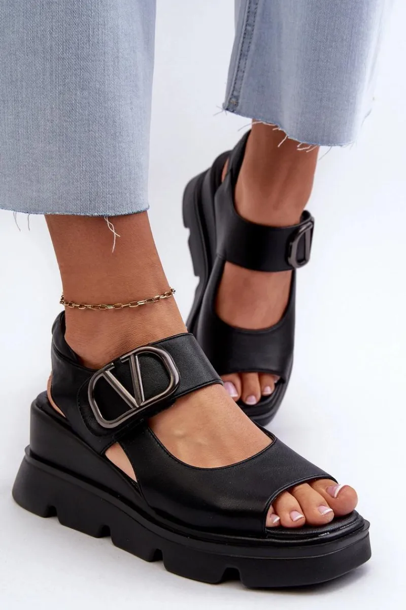 Sale Sandały Damskie Na Koturnie I Platformie Z Eko Skóry Czarne Triaola Damskie Sandały Na Koturnie